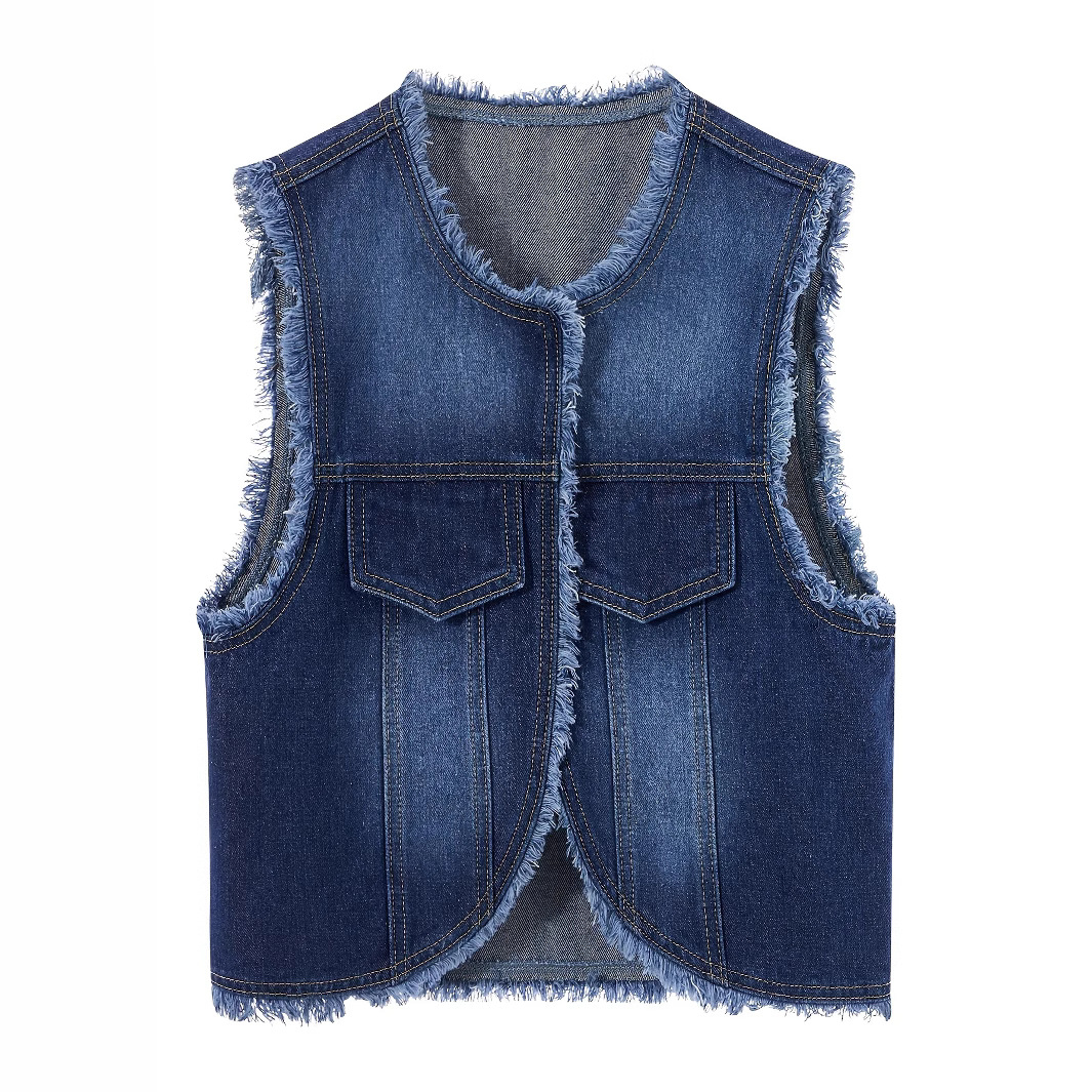 데님 조끼 여성의 새로운 우아한 프린지 로우 엣지 짧은 민소매 조끼 조끼 코트 여성상의스토어 가기