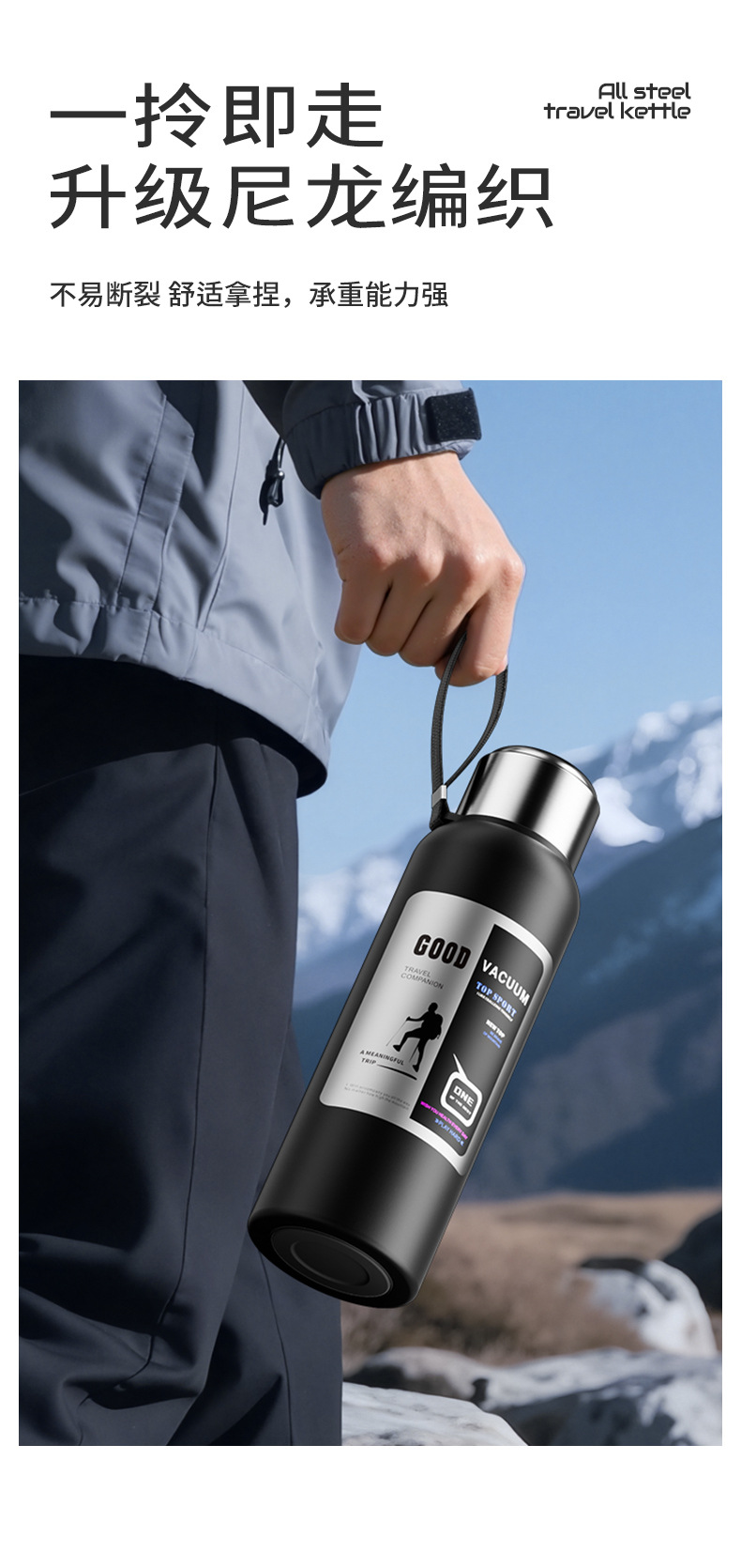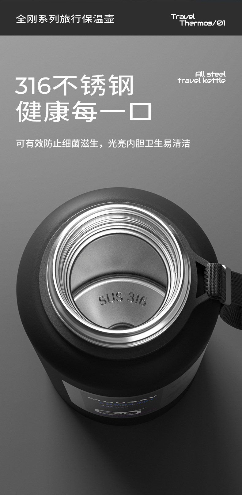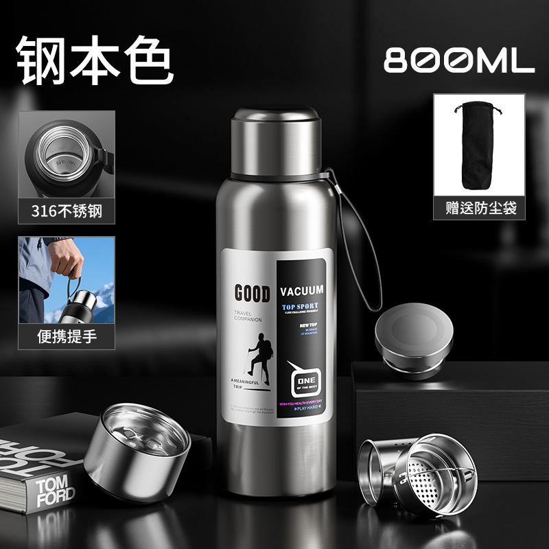 316 스테인레스 스틸 라이너 진공 전체 스틸 절연 주전자 야외 여행 등산 주전자 휴대용 대용량 절연 컵