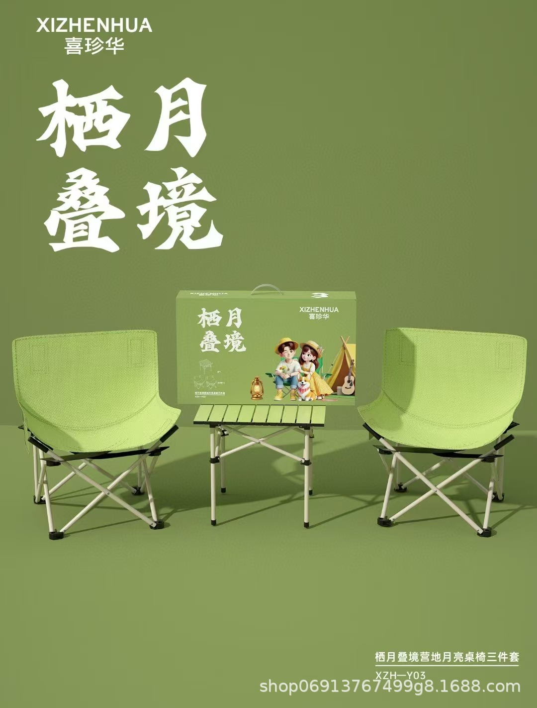 Xizhenhua Qiyue Stacking Camp Moon 테이블 및 의자 3종 세트 XZH-Y 70% off 스태킹 테이블 x1 + 문 의자 x2