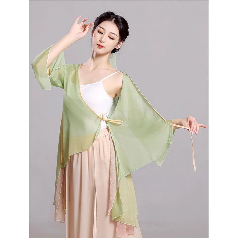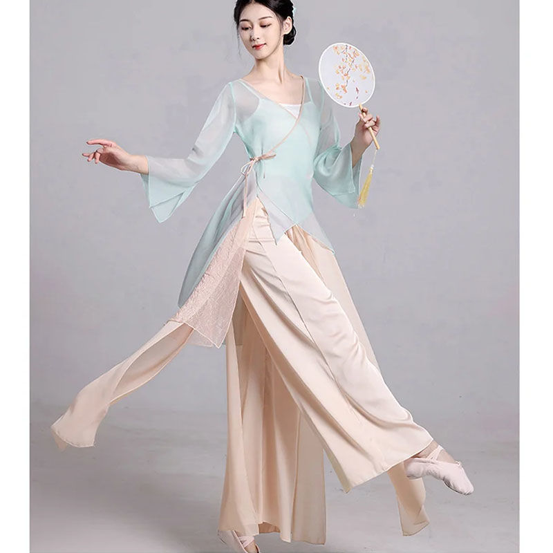 여성용 클래식 댄스 의상, 우아한 거즈 의류, 중국 무용 연습복, 여성용 요정 쉬폰 탑, 퍼포먼스 의류, Quanrong