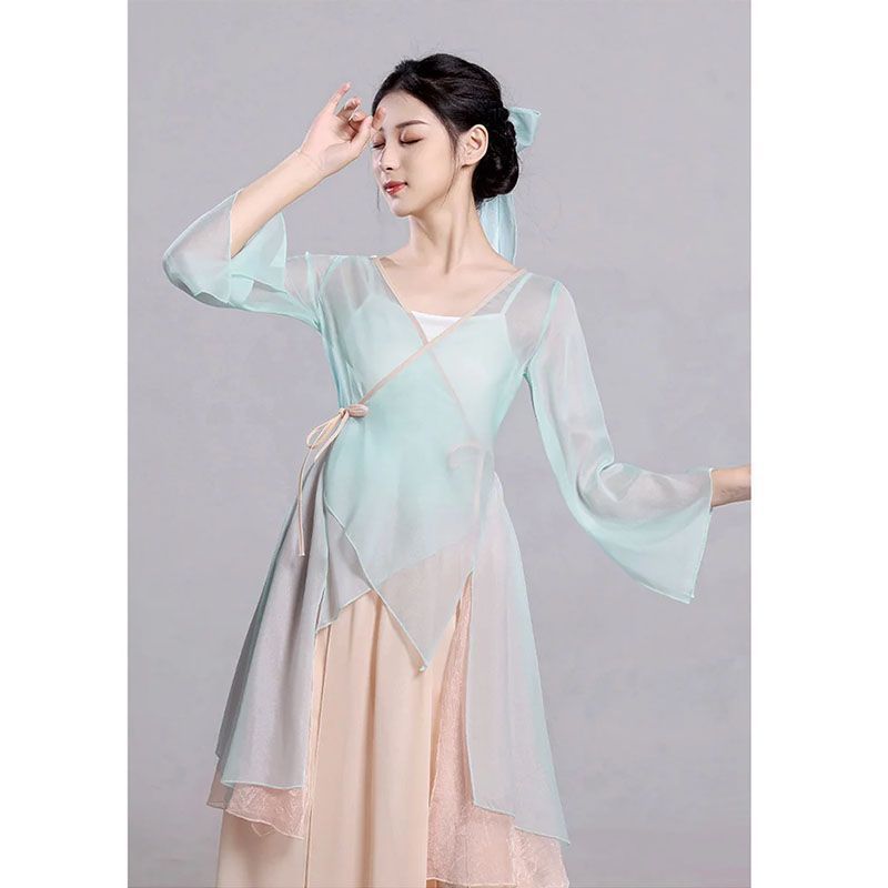 여성용 클래식 댄스 의상, 우아한 거즈 의류, 중국 무용 연습복, 여성용 요정 쉬폰 탑, 퍼포먼스 의류, Quanrong스토어 가기
