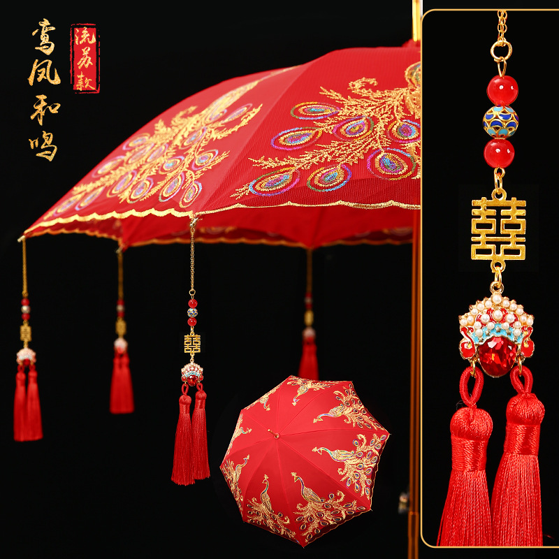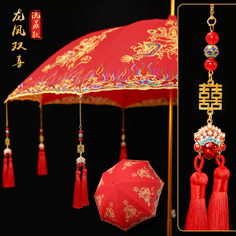 웨딩 레드 우산, 웨딩 우산, 신부 우산, 웨딩 중국식 출장 레드 웨딩 우산, 결혼식을 위한 레드 우산, 가벼운 럭셔리 웨딩 우산