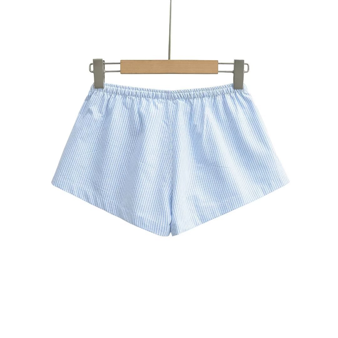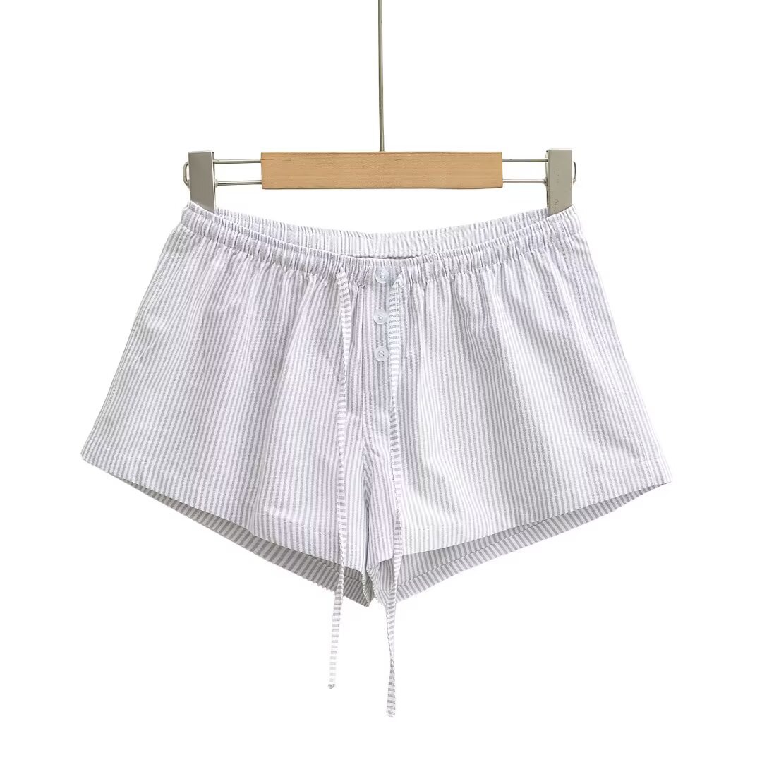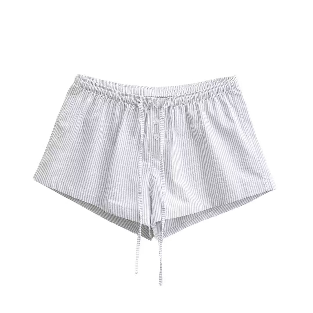 여성을위한 대비 색 줄무늬 버튼 드로스트링 로우 웨이스트 반바지 여름 2025 다목적 신축성있는 허리 루즈 캐주얼 바닥 홈 바지
