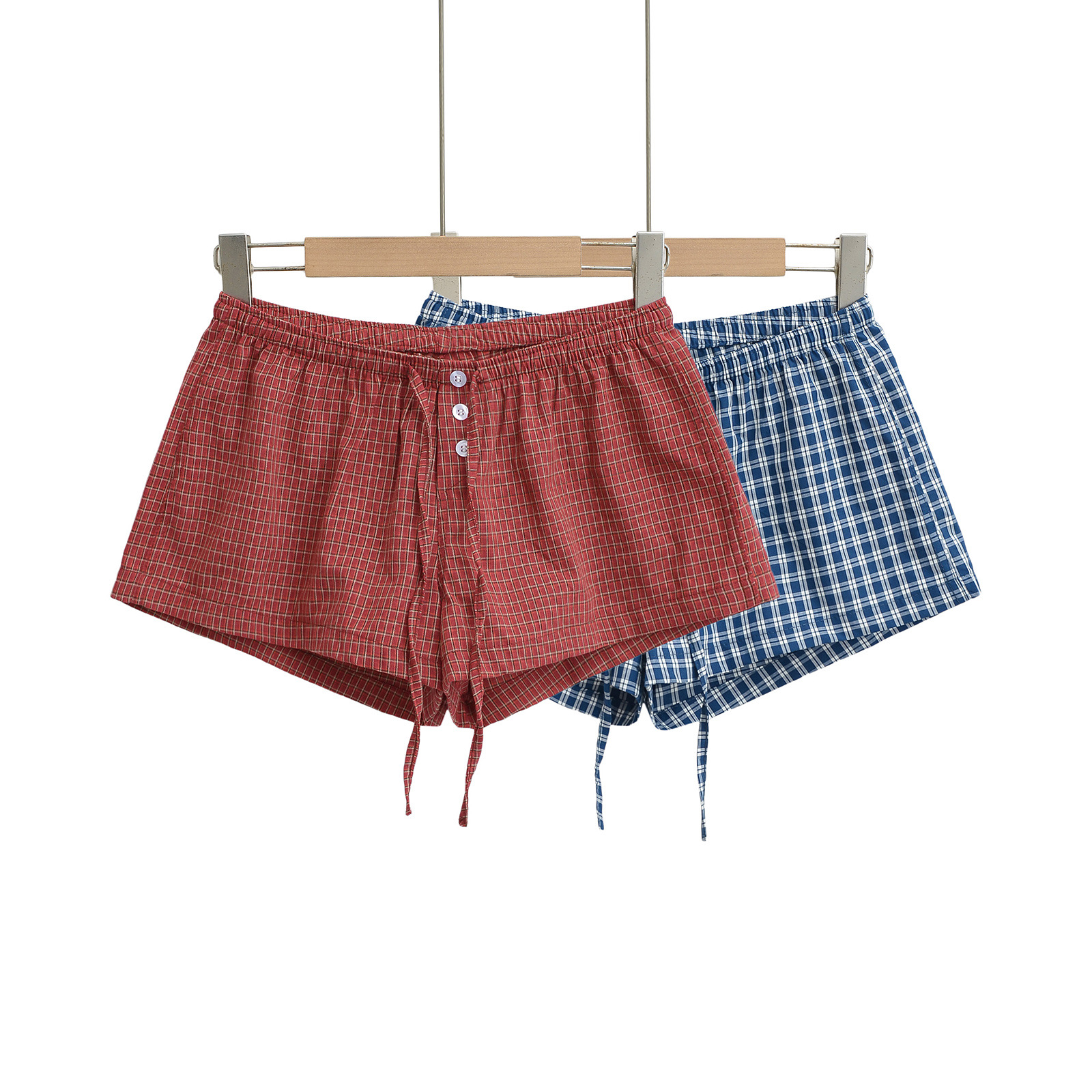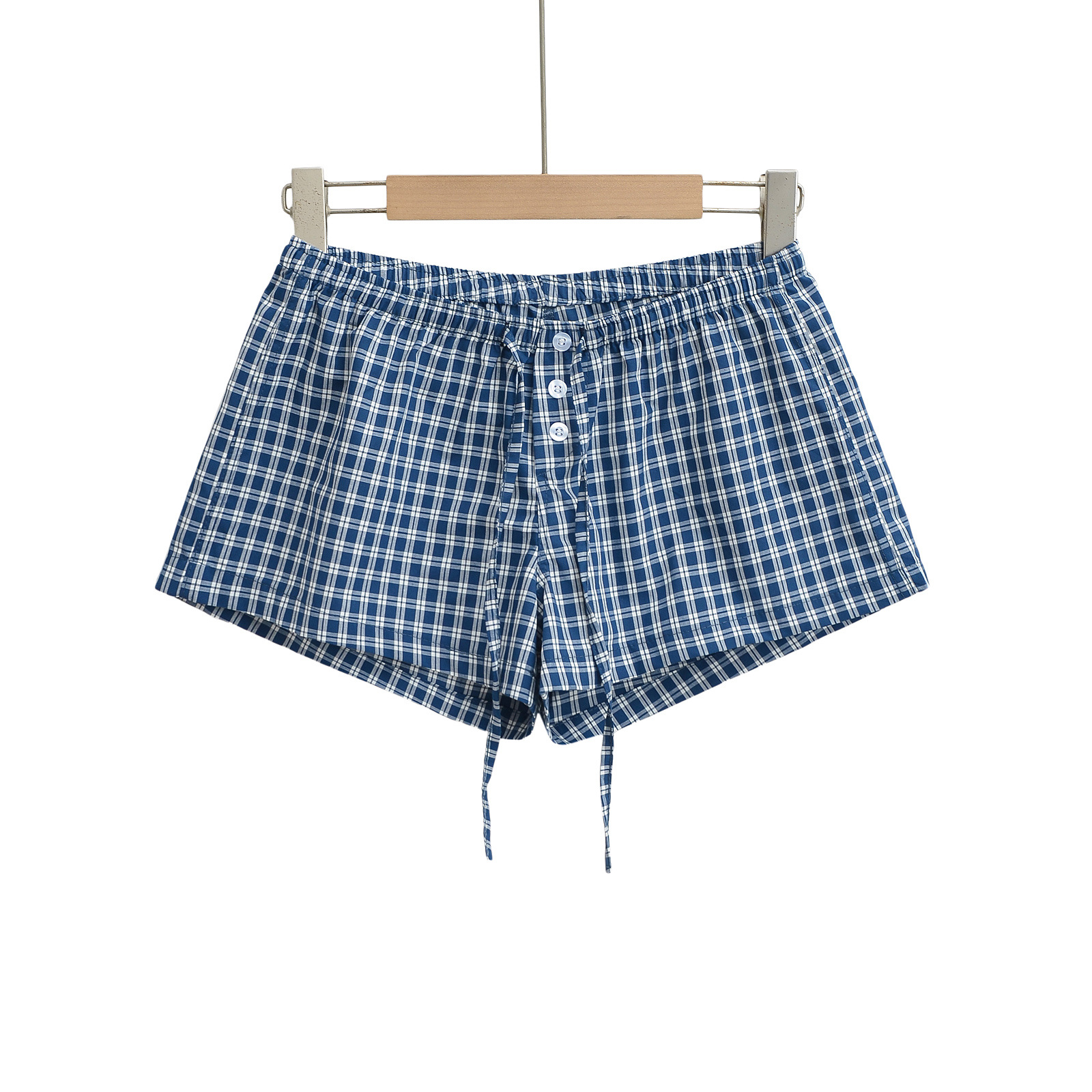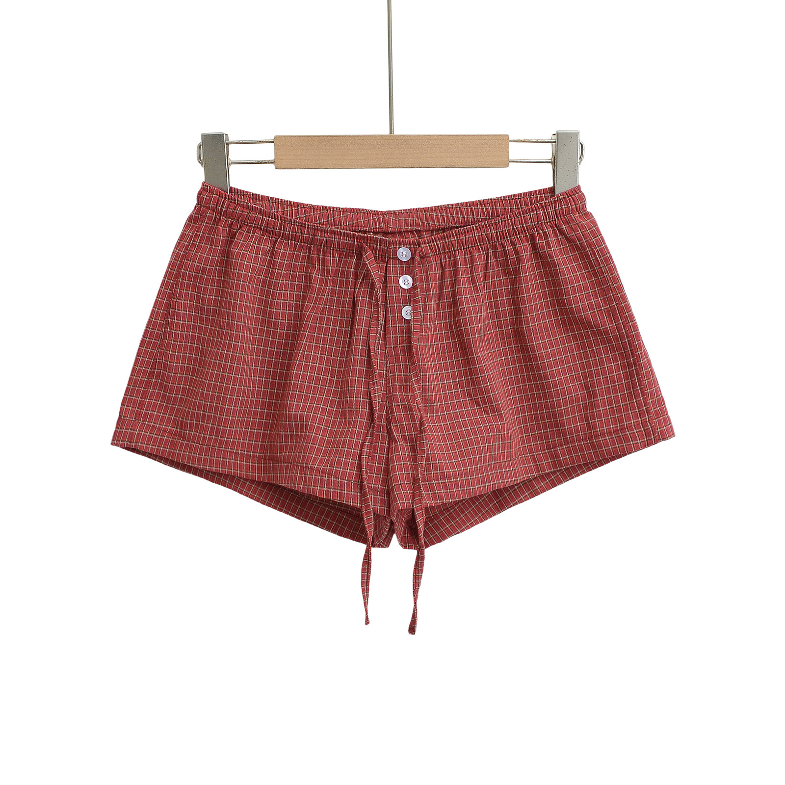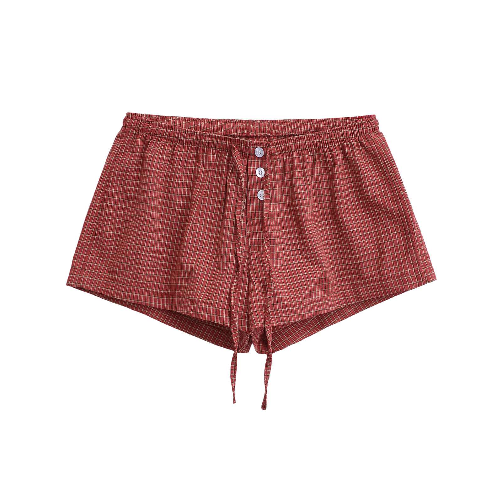 여성을위한 대비 색 줄무늬 버튼 드로스트링 로우 웨이스트 반바지 여름 2025 다목적 신축성있는 허리 루즈 캐주얼 바닥 홈 바지