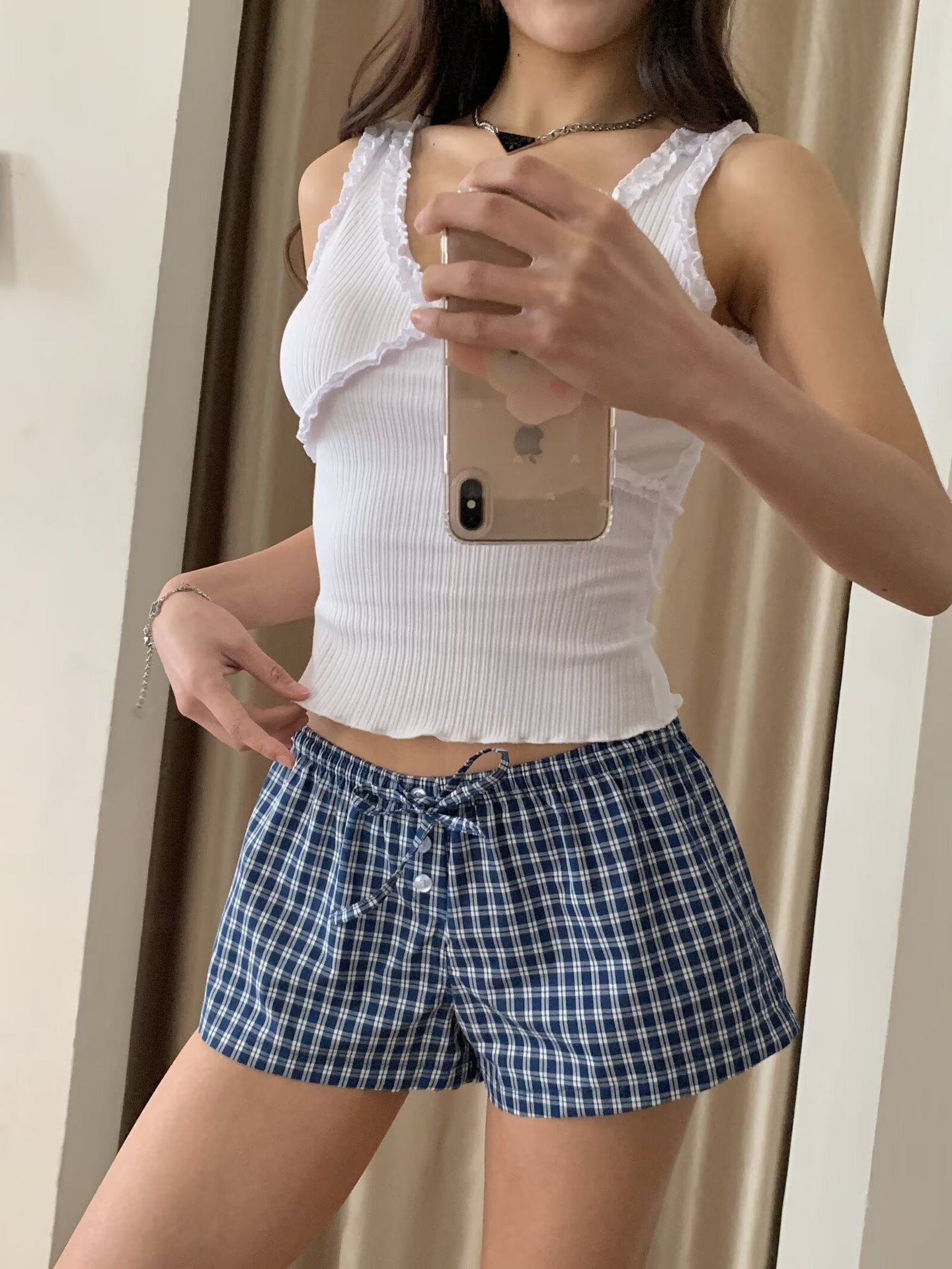여성을위한 대비 색 줄무늬 버튼 드로스트링 로우 웨이스트 반바지 여름 2025 다목적 신축성있는 허리 루즈 캐주얼 바닥 홈 바지스토어 가기