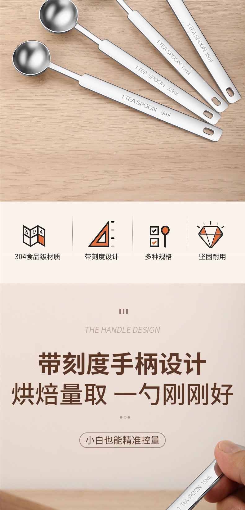 • 손잡이가 긴 계량스푼(일체형)을 합리적인 가격으로 3종 세트로 구성