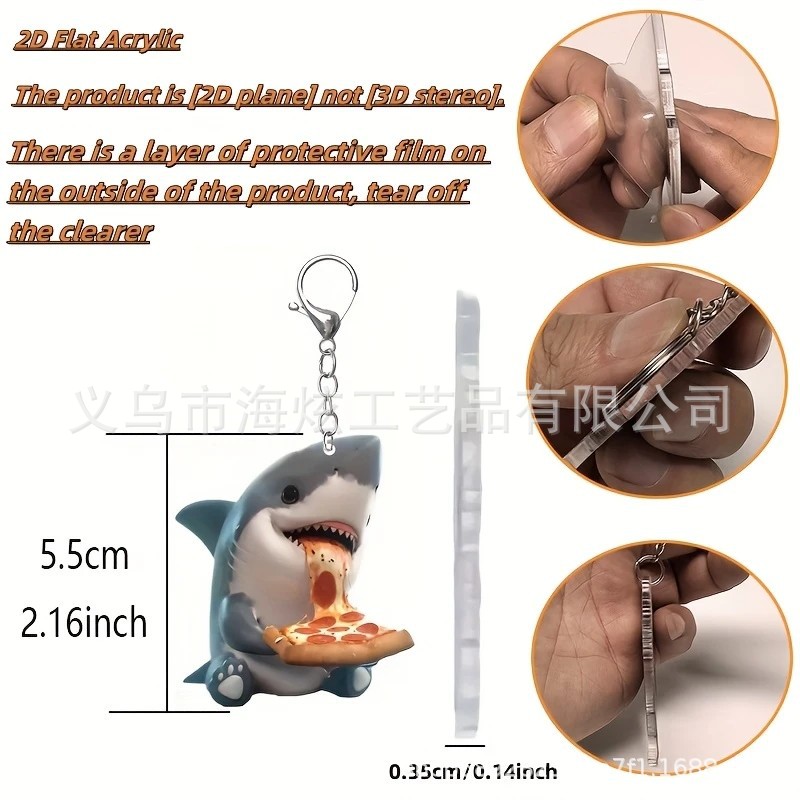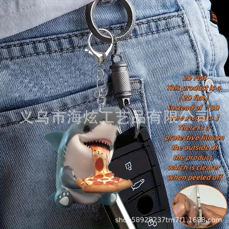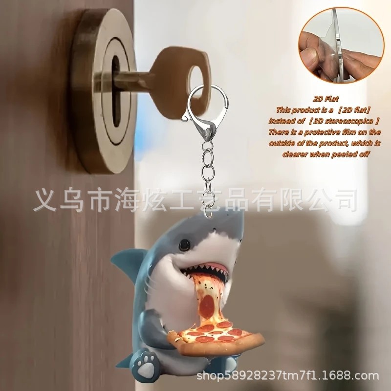 크리 에이 티브 새로운 피자 상어 키 체인 펜던트 크로스 보더 아크릴 평면 자동차 장식 펜던트 휴일 선물