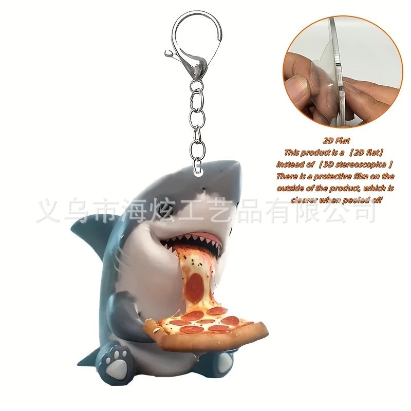 크리 에이 티브 새로운 피자 상어 키 체인 펜던트 크로스 보더 아크릴 평면 자동차 장식 펜던트 휴일 선물스토어 가기
