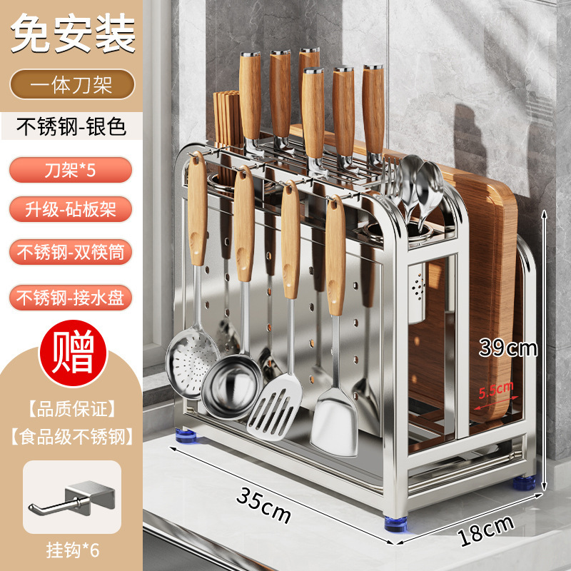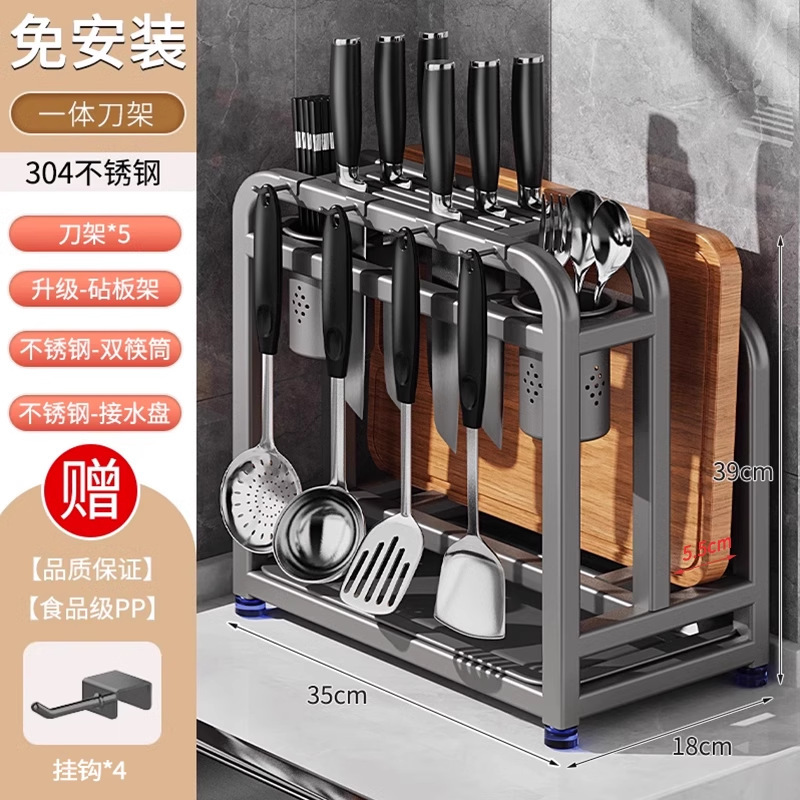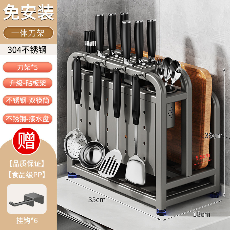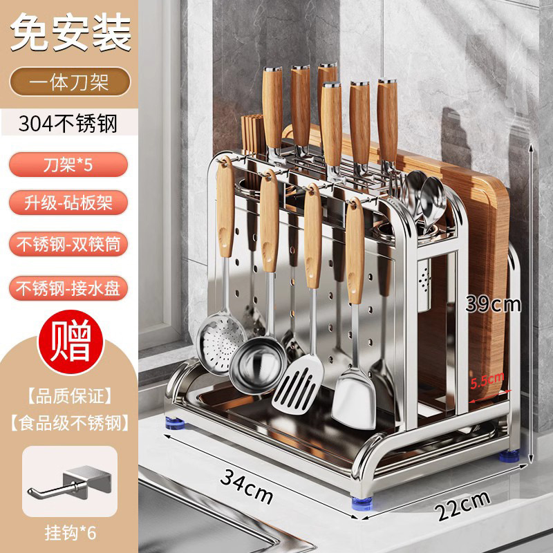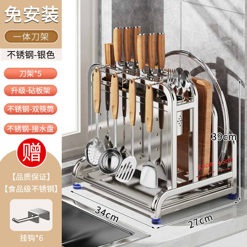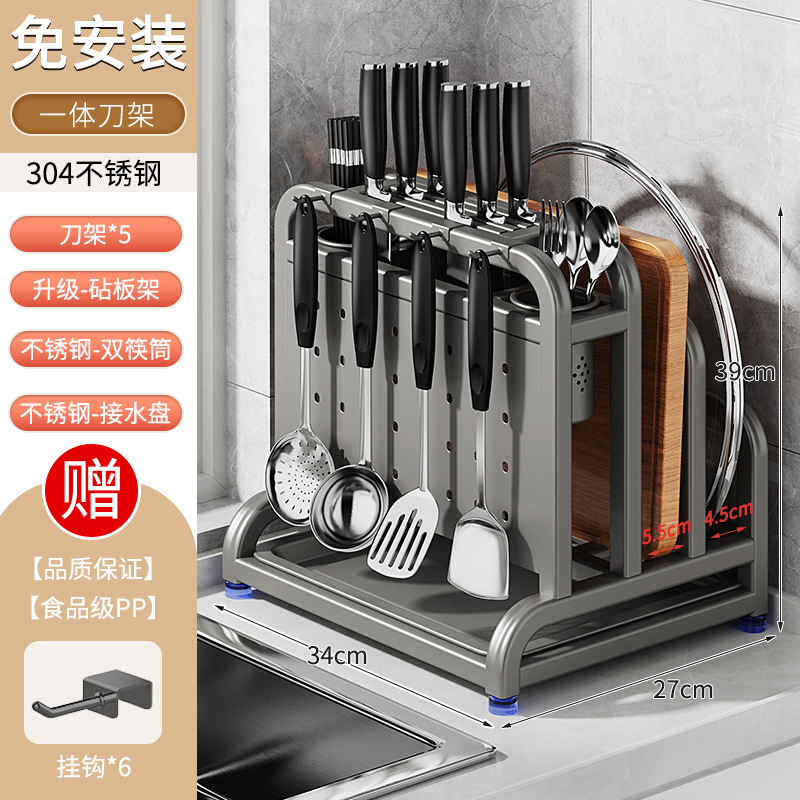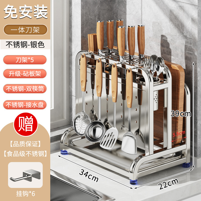 새로운 스테인레스 스틸 주방 칼 홀더, 도마, 칼, 다기능 젓가락 케이지, 통합 보관 및 배치스토어 가기