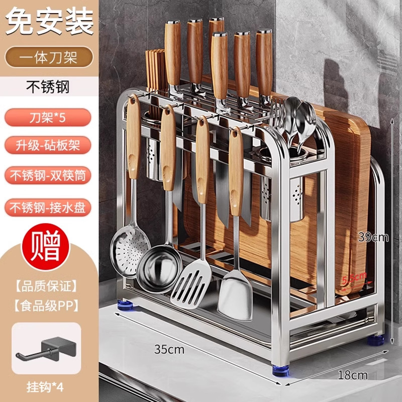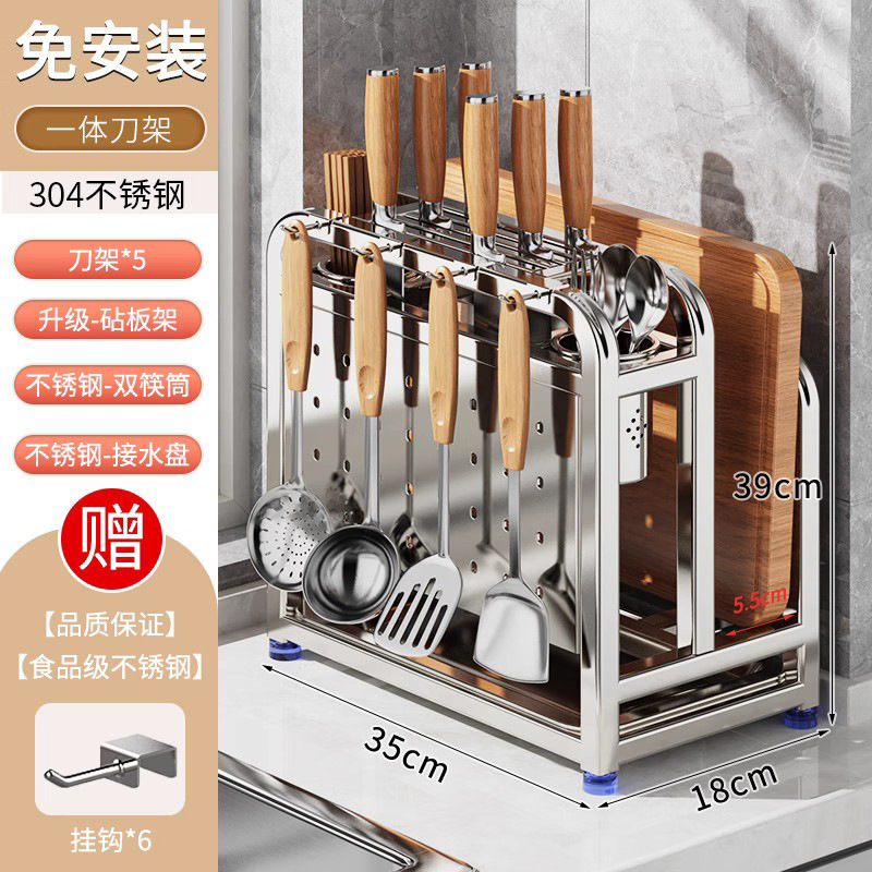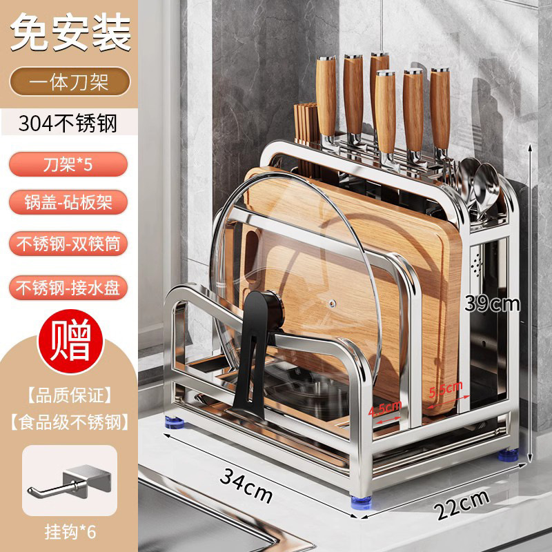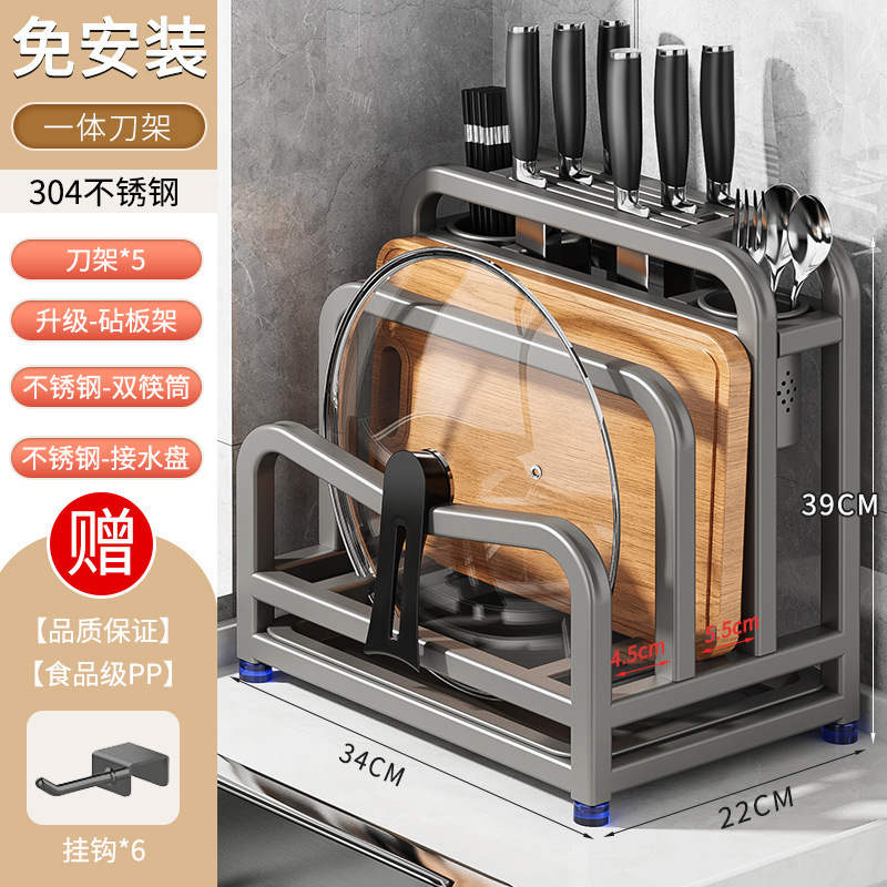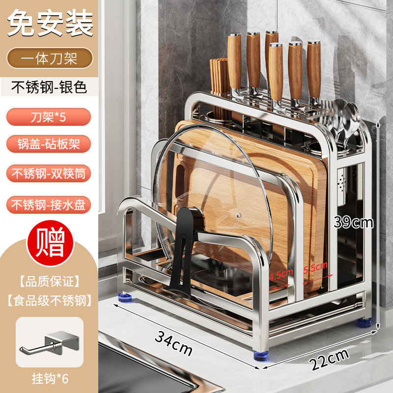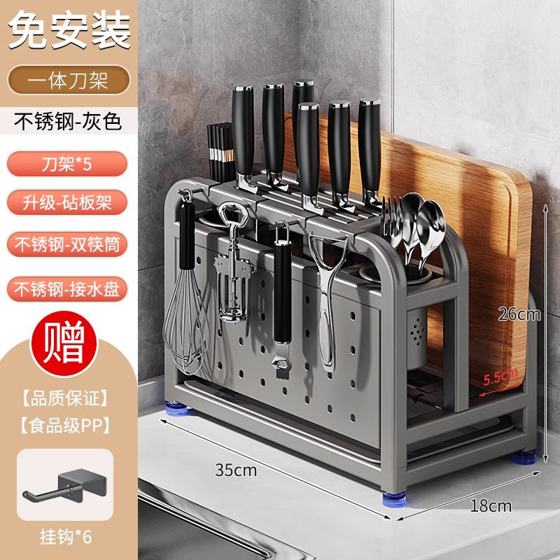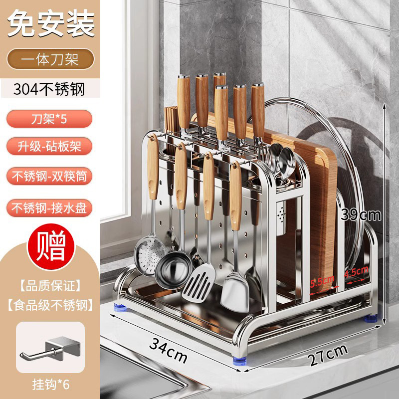 새로운 스테인레스 스틸 주방 칼 홀더, 도마, 칼, 다기능 젓가락 케이지, 통합 보관 및 배치스토어 가기