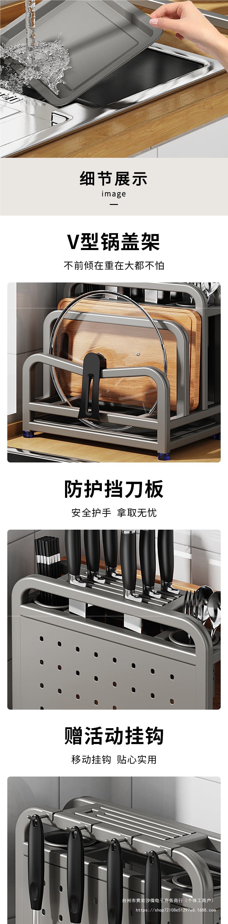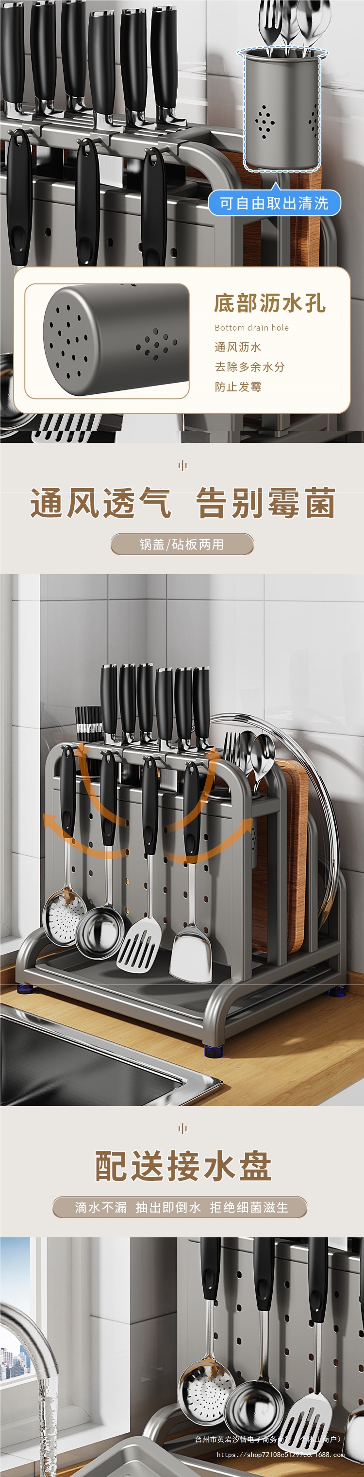 • 304 스테인리스 건그레이·높이 및 넓어짐 [칼가드+이중젓가락통+도마걸이+냄비뚜껑걸이]