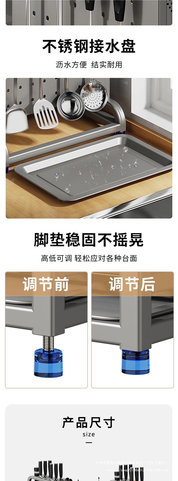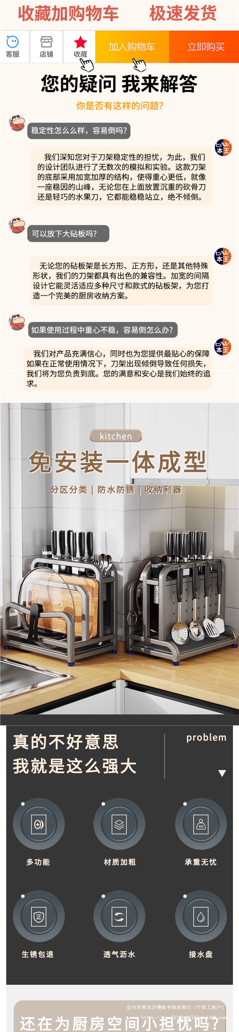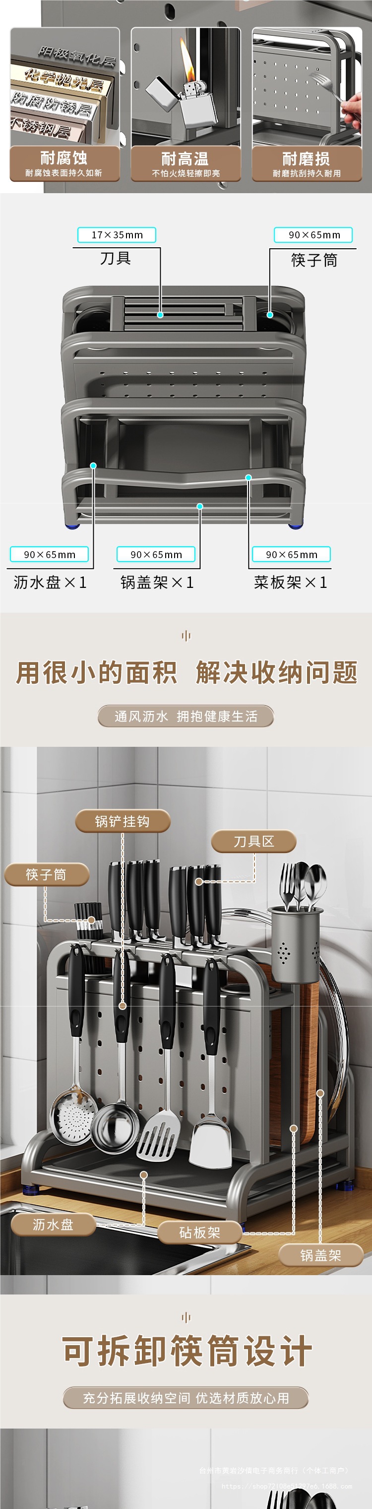 • 304 스테인리스 총재·높이 및 넓어짐 [칼가드+이중젓가락통+도마걸이+냄비뚜껑걸이3개(방수형)]