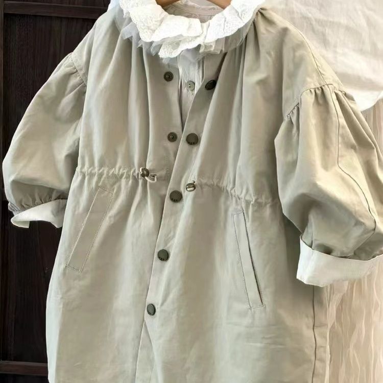 여아 코트 중간 길이 영국 스타일 아동용 싱글 브레스트 윈드 브레이커 재킷 서양식 양면 가을 복고풍 꽃무늬스토어 가기
