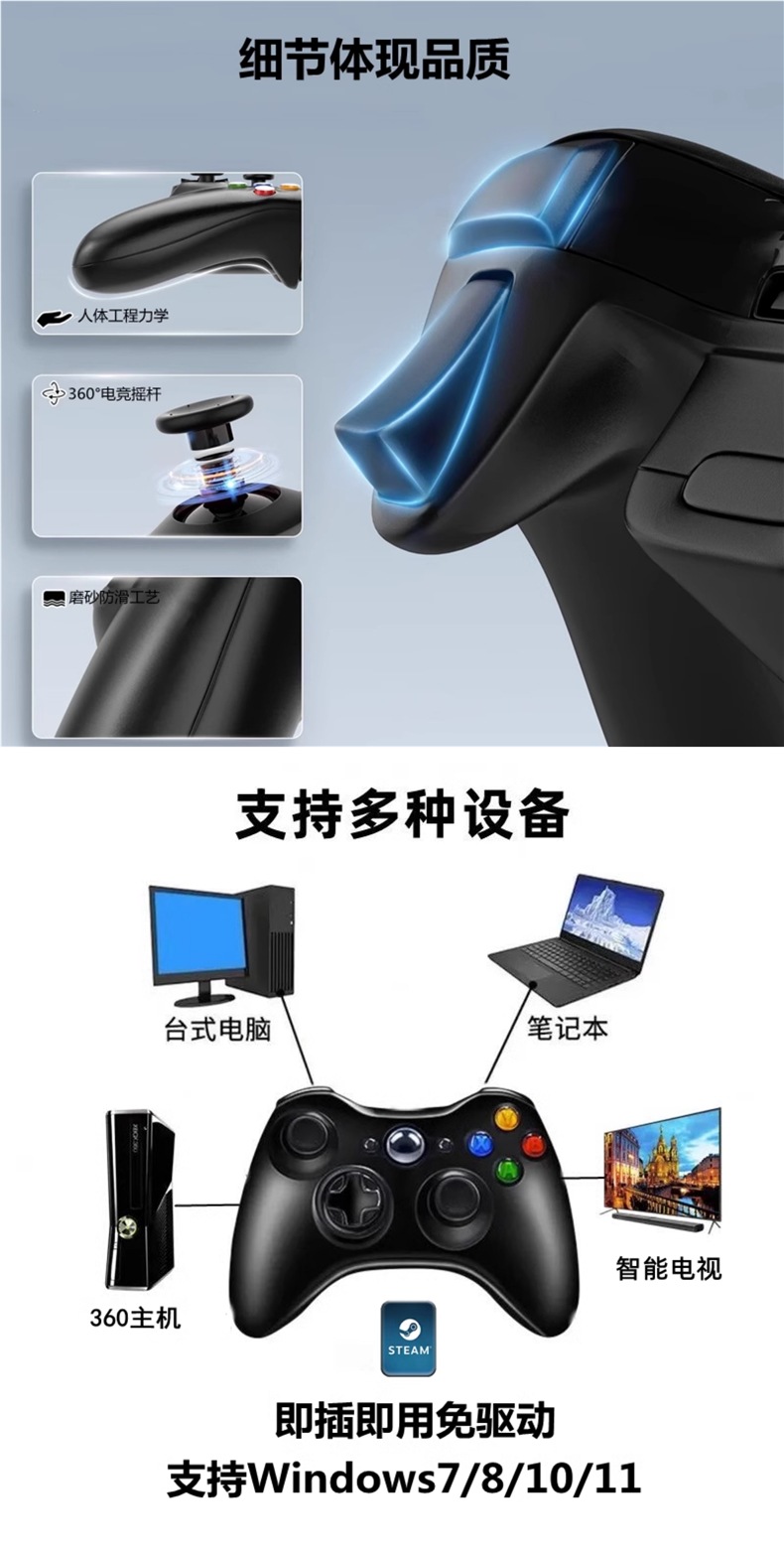 무선 듀얼 USB TV 진동 블랙 신화가 포함된 Xbox360 핸들 PC 컴퓨터 스팀 게임 핸들에 적합스토어 가기