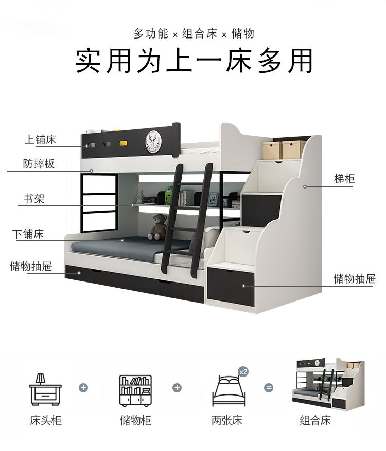 • 높고 낮은 침대 + 사다리 캐비닛 + 견인 침대 + 매트리스