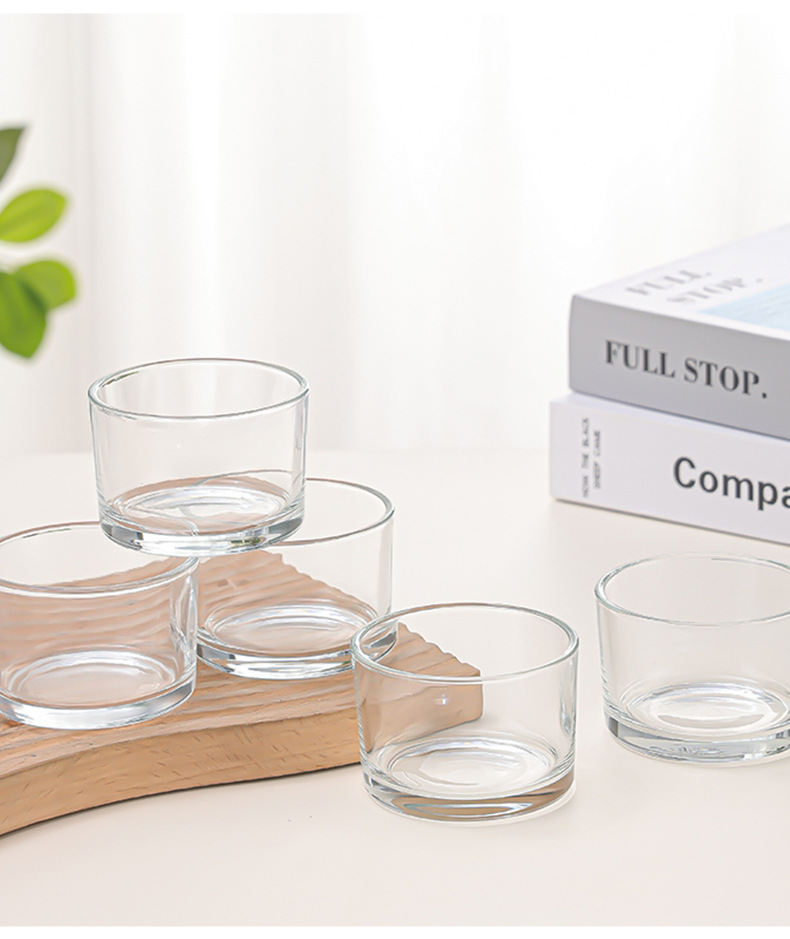 7550 캔들 홀더 컵 재고 있음 투명 두꺼운 유리 캔들 컵 실내 로맨틱 원형 아로마테라피 캔들 홀더 컵 도매