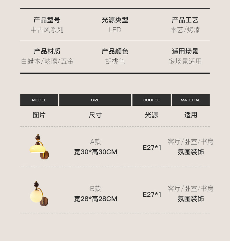 • B형 벽등 12*28cm—따뜻한 빛