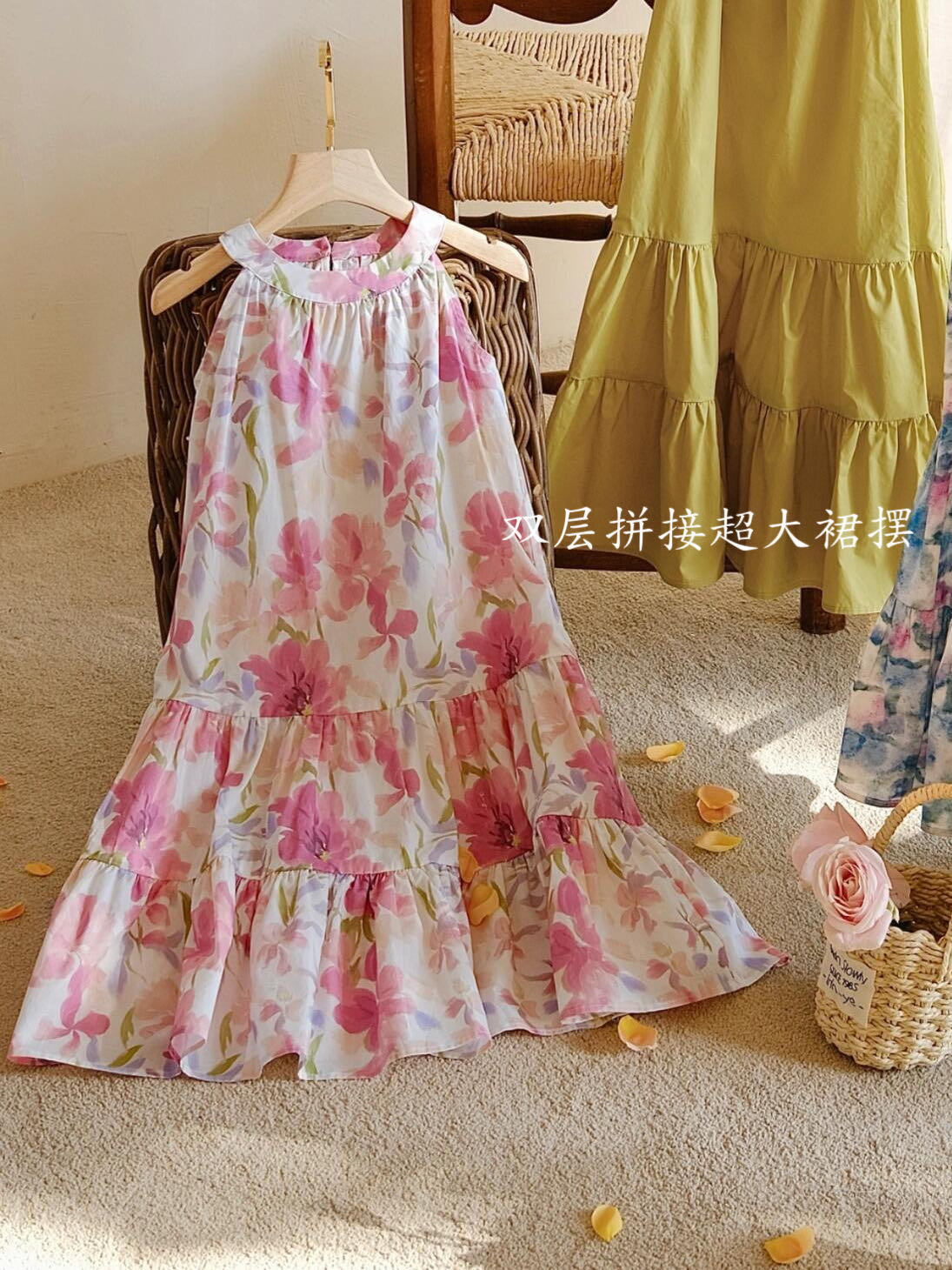 ✔️清凉圆领挂脖设计,3D立体剪裁,多层拼接超大公主裙摆,很包容身材