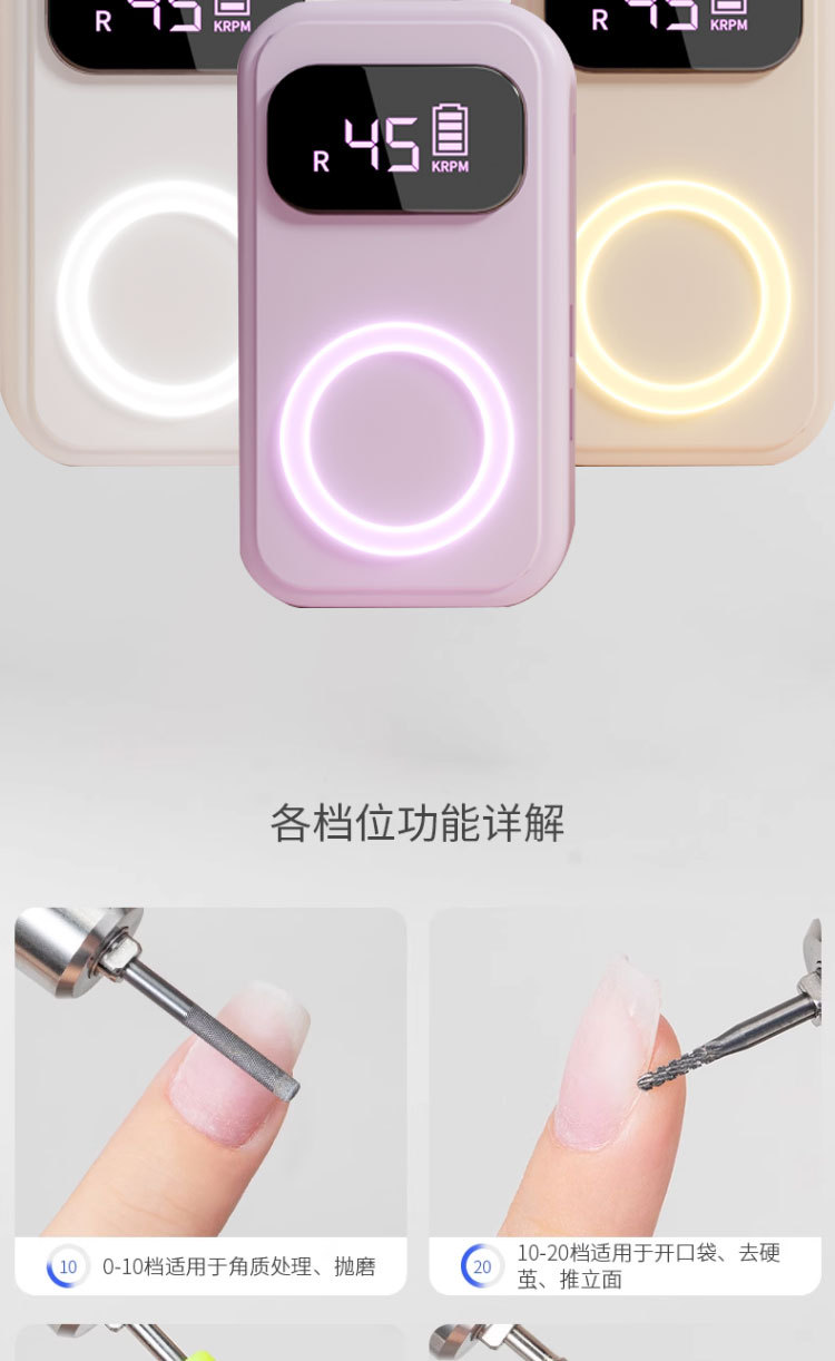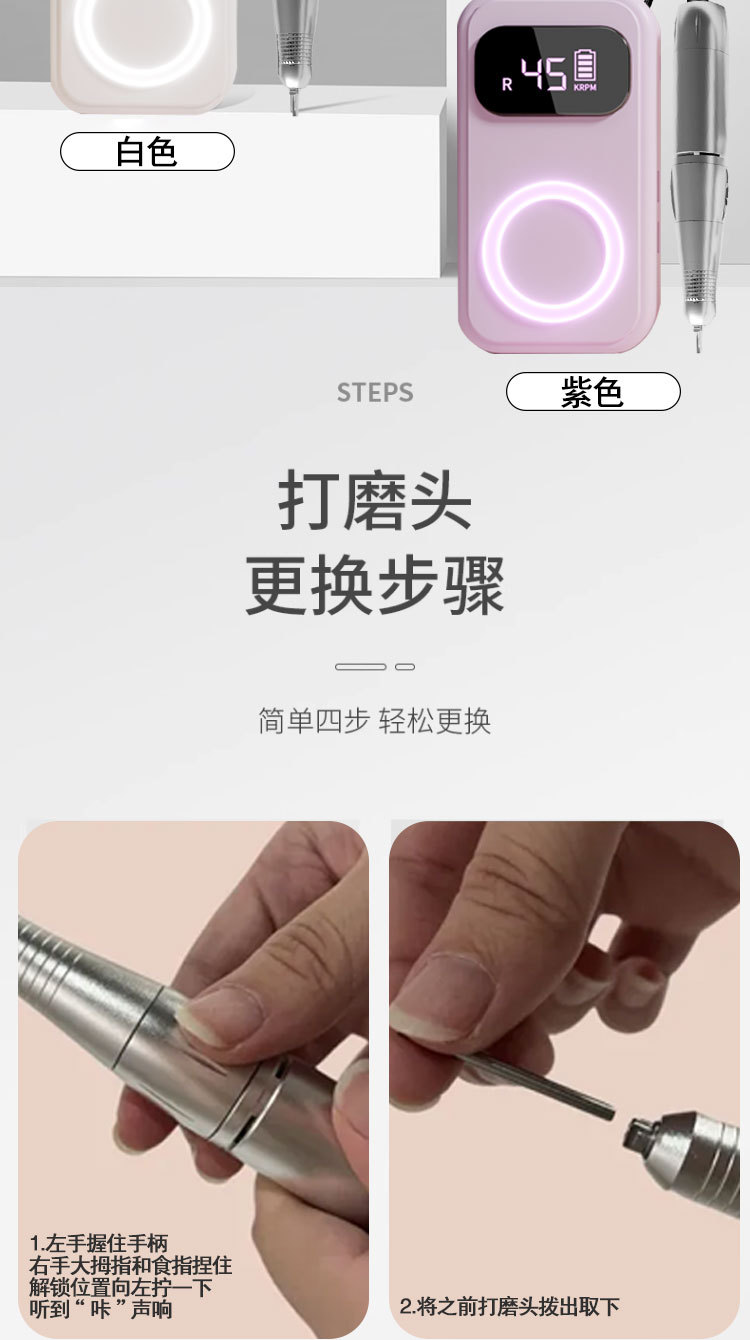 • Moonlight White-USB 포트 [45000RPM 고속, 무료 연삭 헤드]