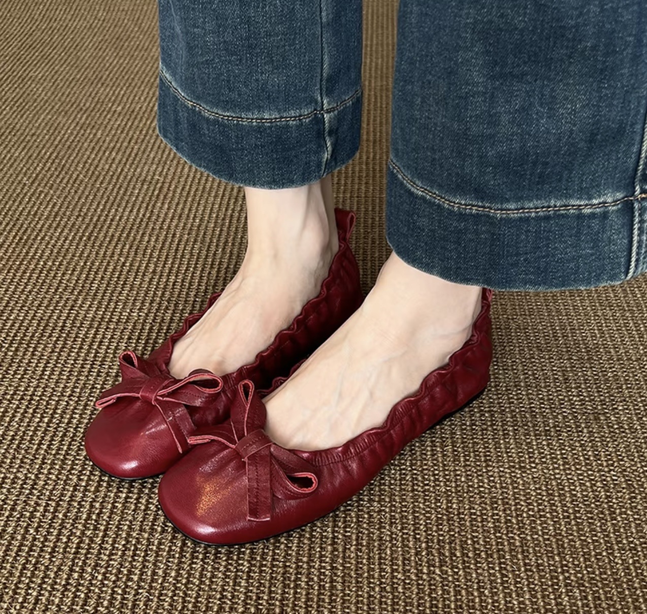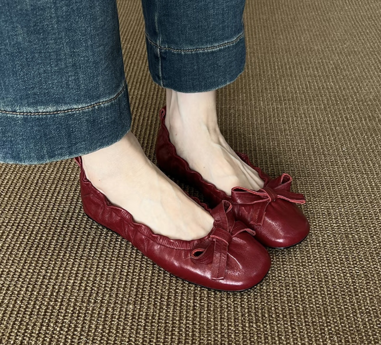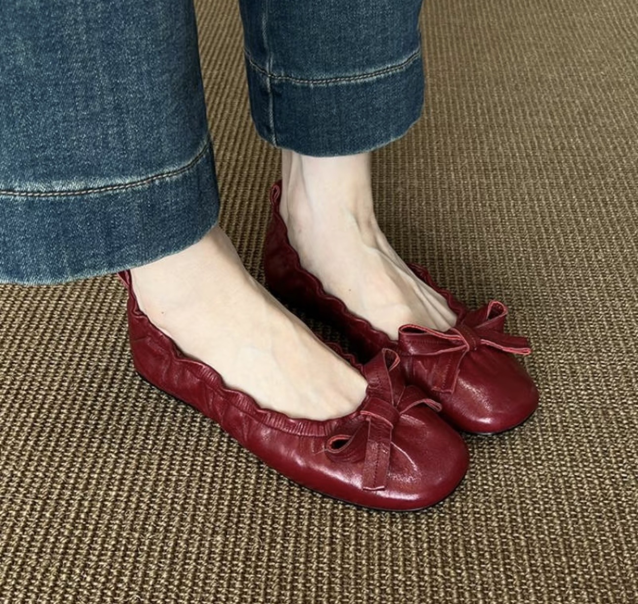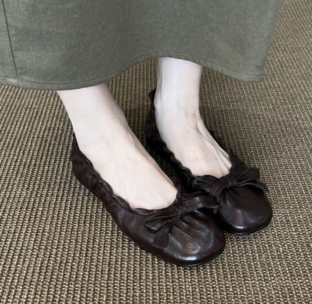 빅사이즈 여성화 41-42 프렌치 스타일 리본 플랫 발레 슈즈 라운드 토 플리츠 레트로 메리제인 슈즈 B스토어 가기