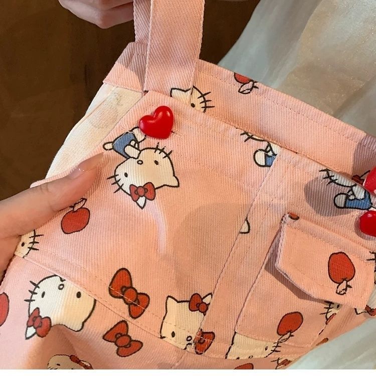 여아용 슈퍼 귀여운 도파민 패션 조절형 KT 고양이 멜빵바지 아동용 점프수트 세트 여름 레이스 조끼스토어 가기