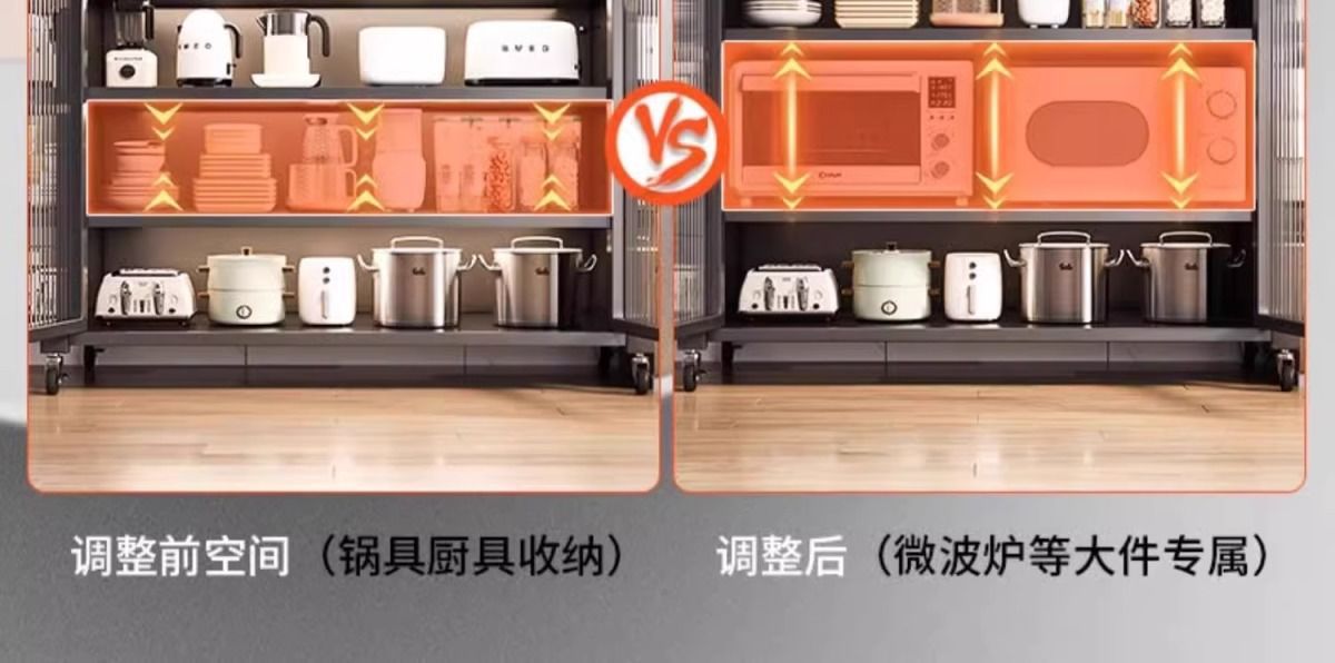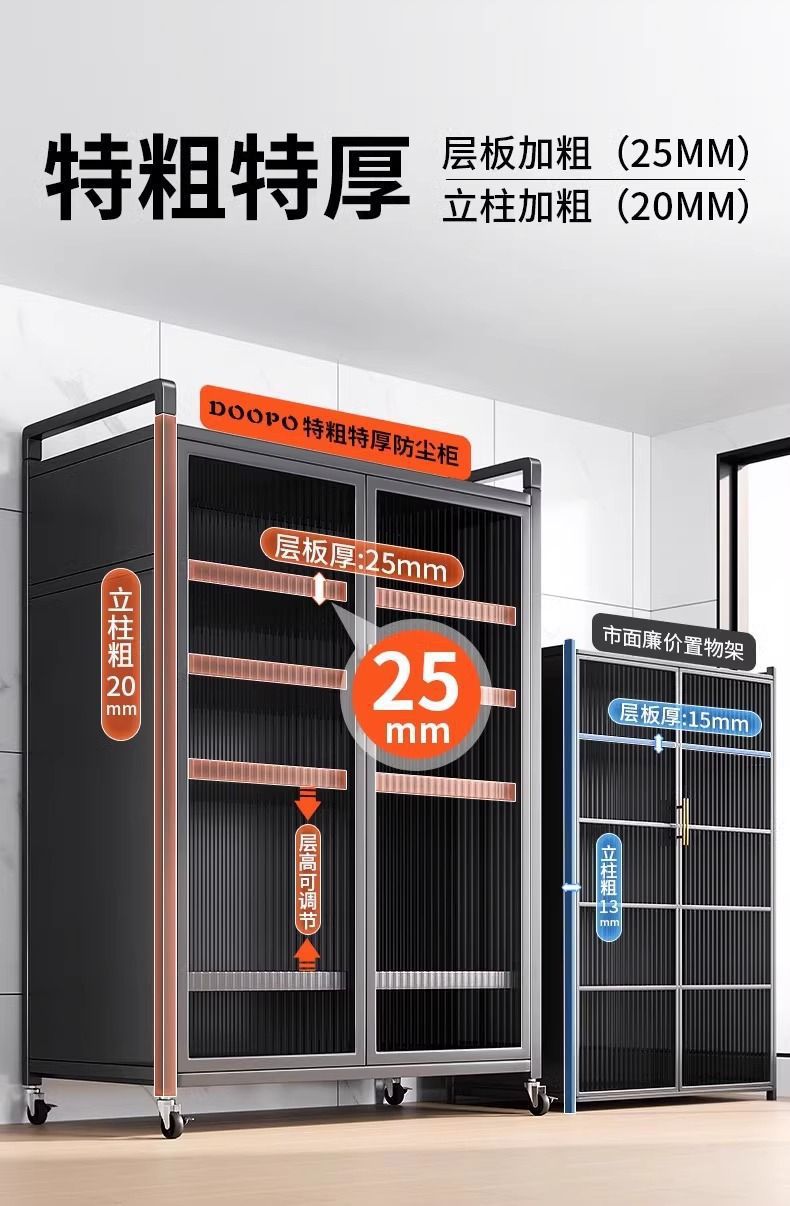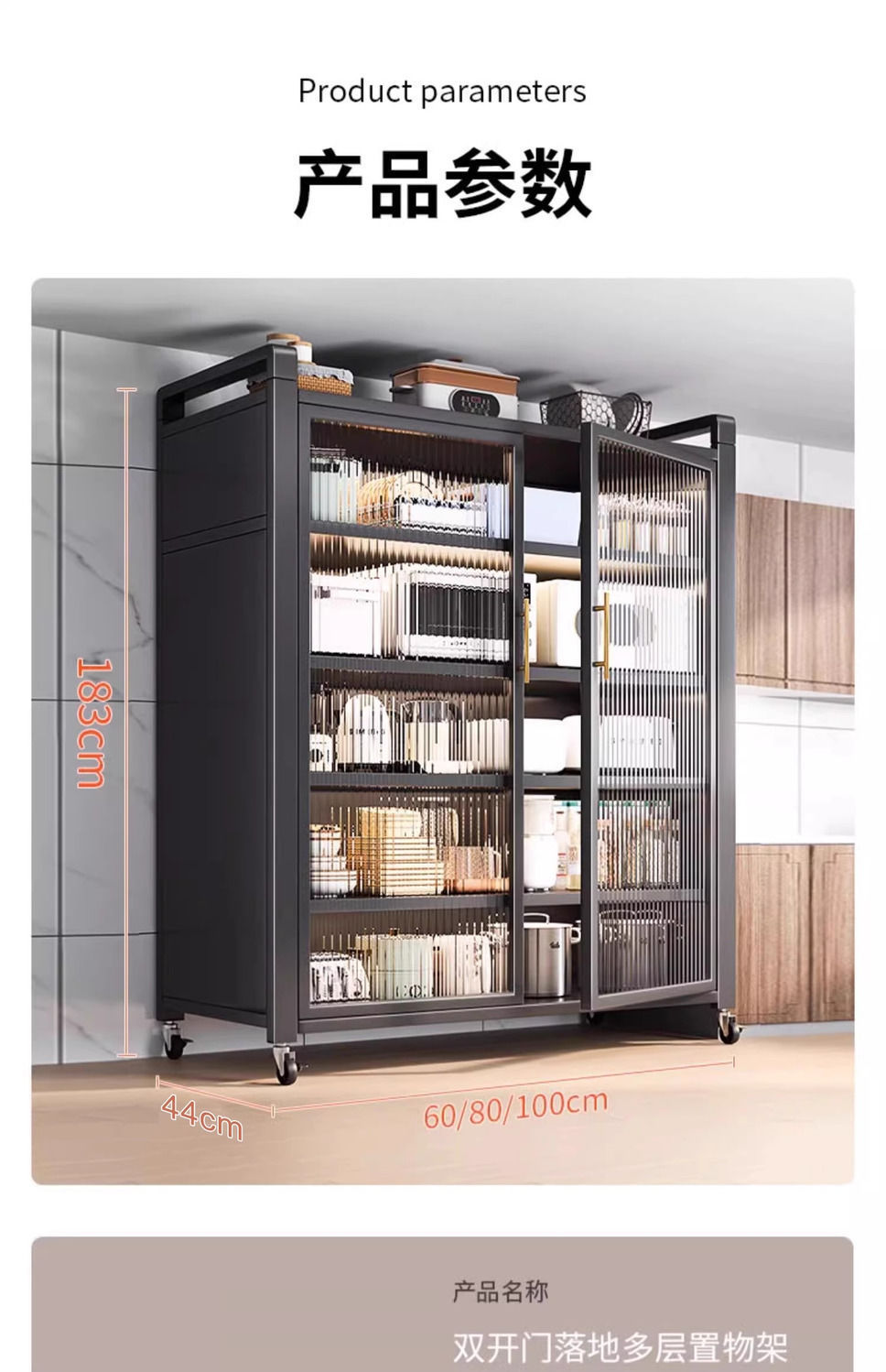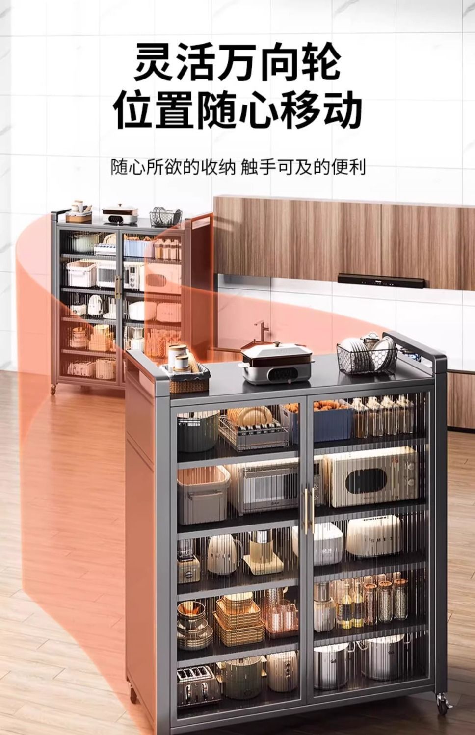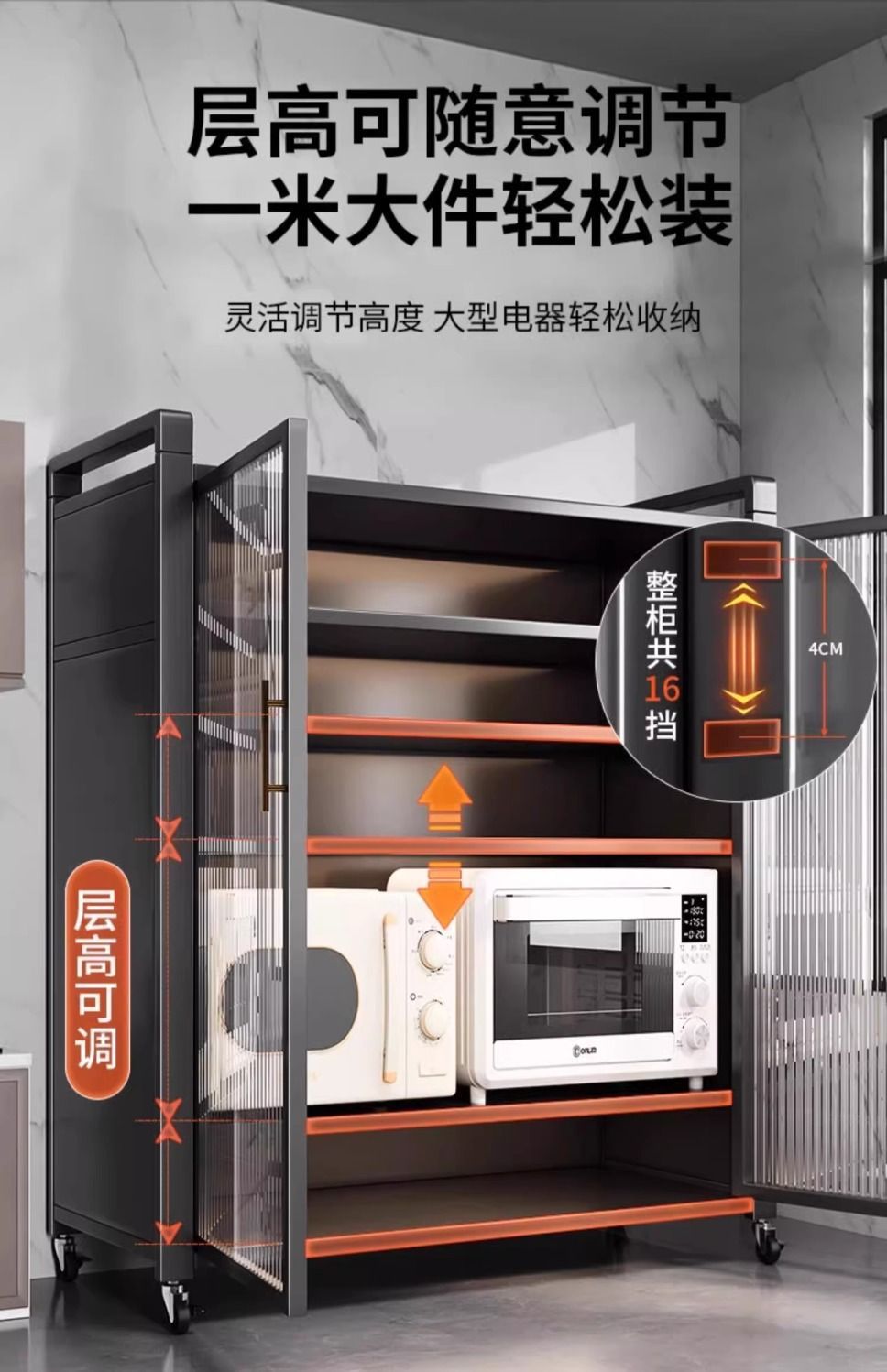 인기 있는 주방 캐비닛 탄소강 양문형 수납 캐비닛 다층 도어 수납 전자 레인지 수납 캐비닛 바퀴 포함
