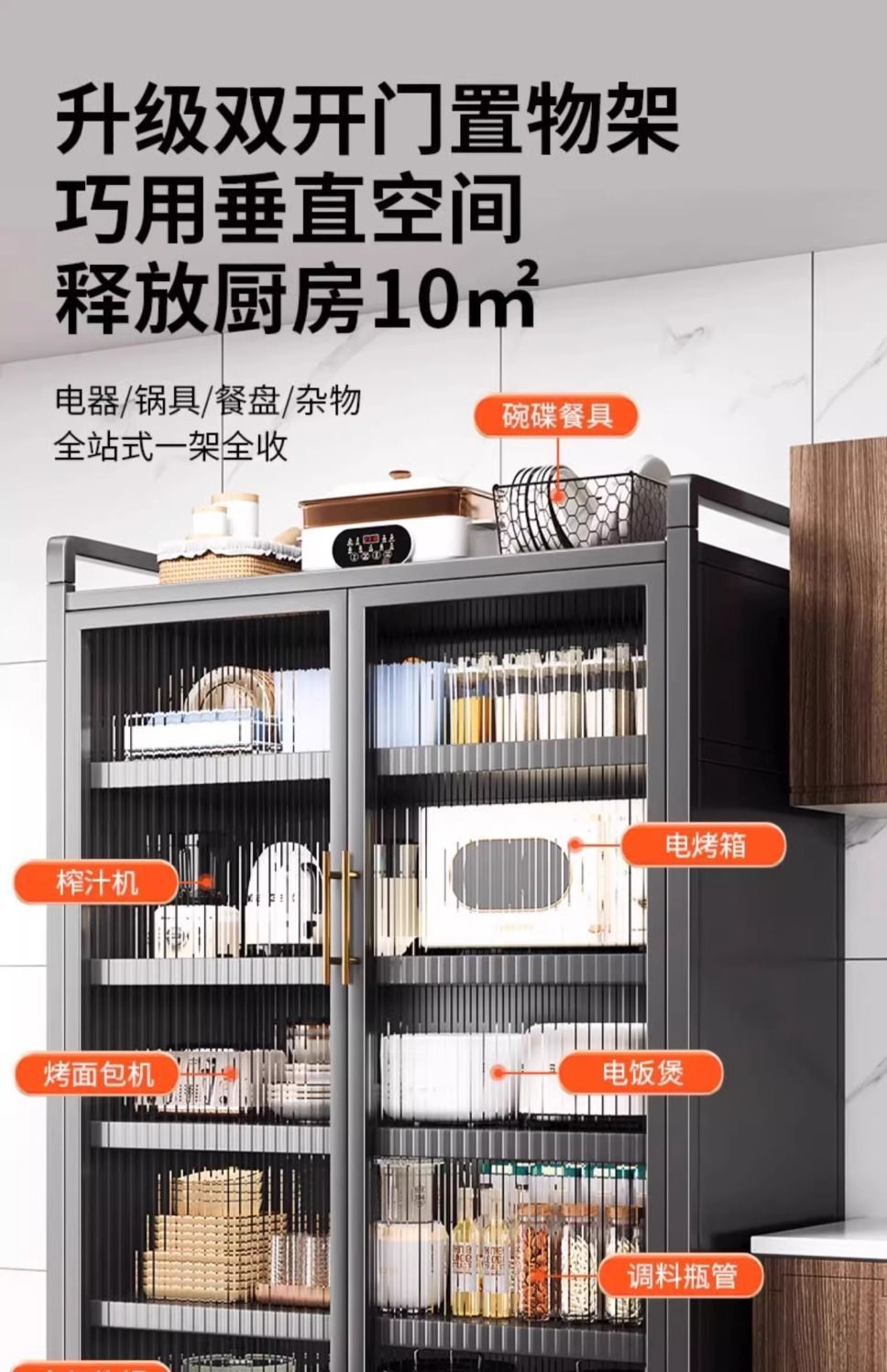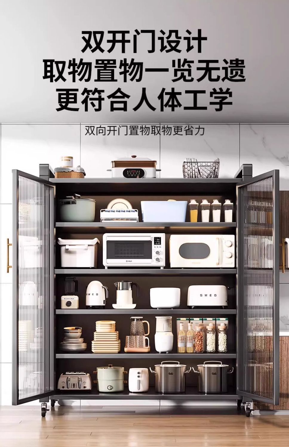 인기 있는 주방 캐비닛 탄소강 양문형 수납 캐비닛 다층 도어 수납 전자 레인지 수납 캐비닛 바퀴 포함스토어 가기