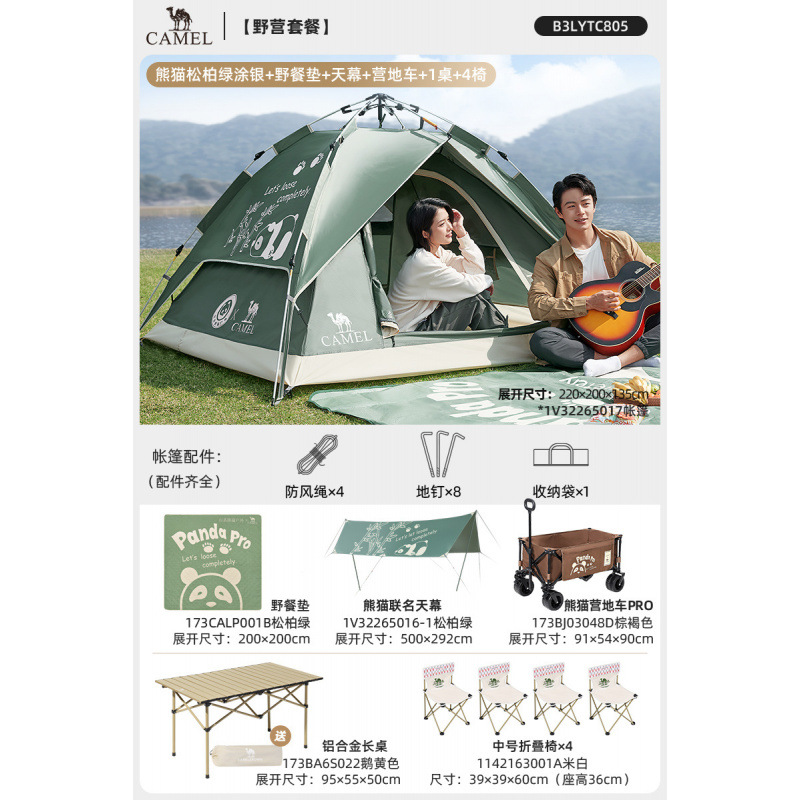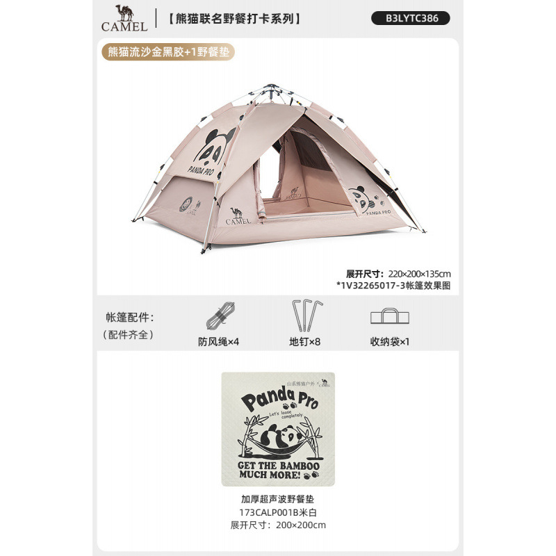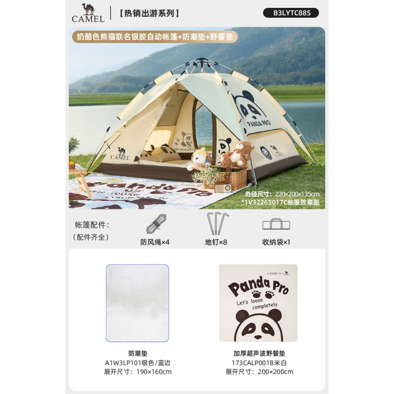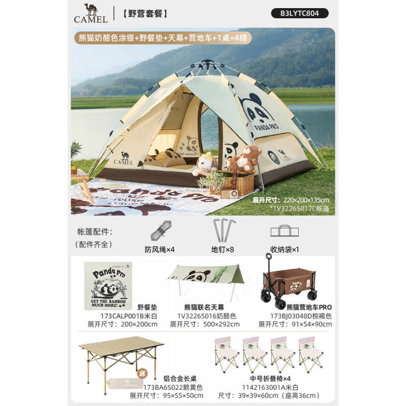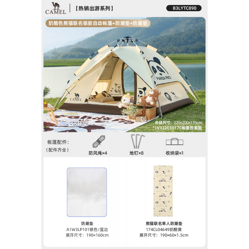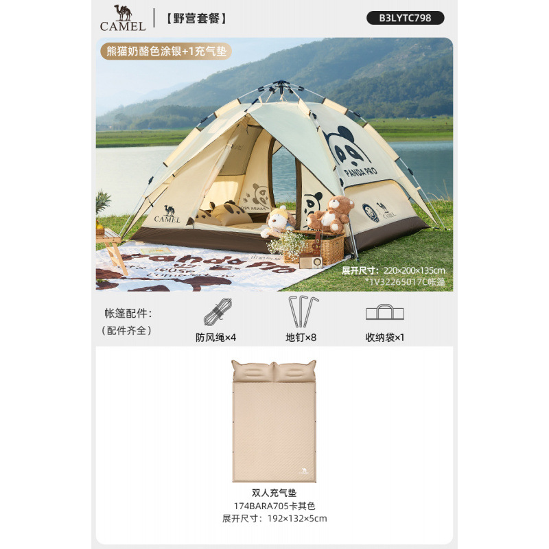 낙타 팬더 텐트 야외 접이식 휴대용 캠핑 캠핑 장비 밤새도록 방수 및 차양 텐트스토어 가기