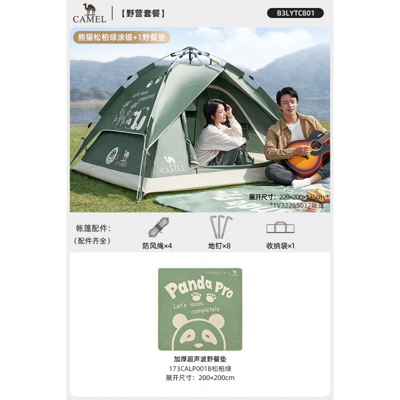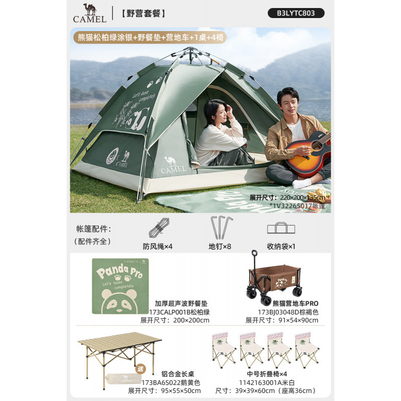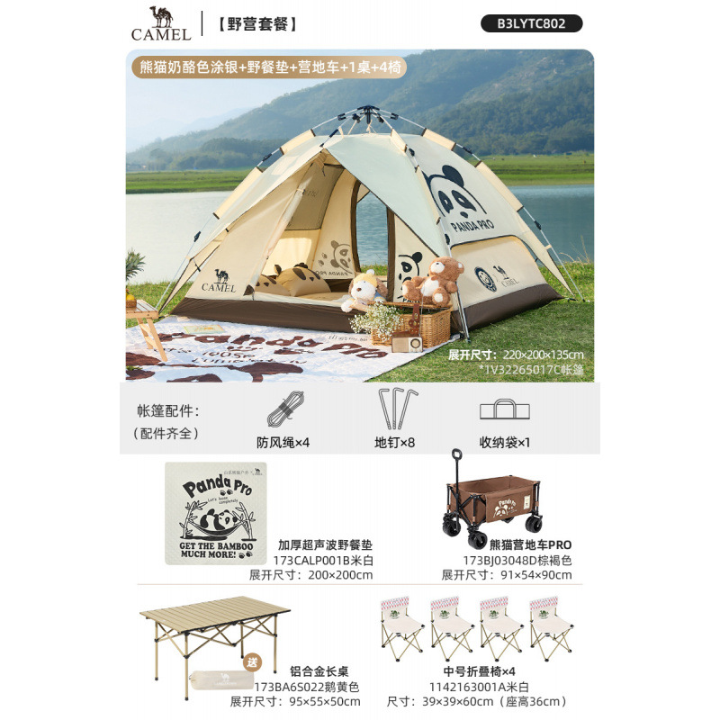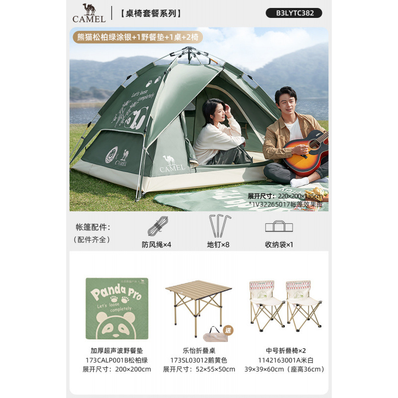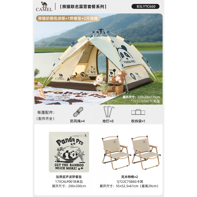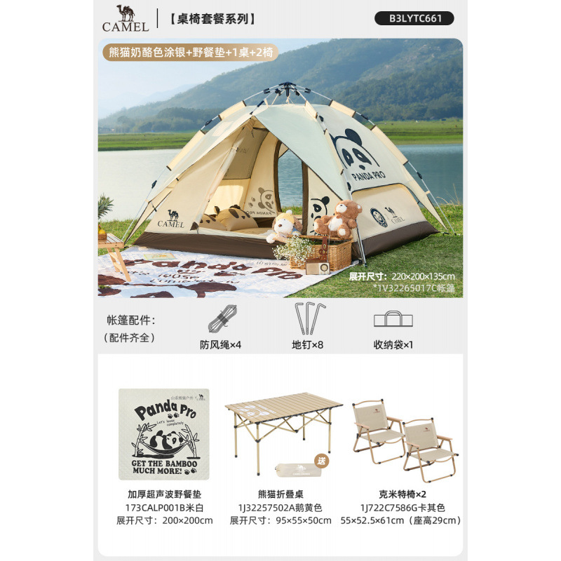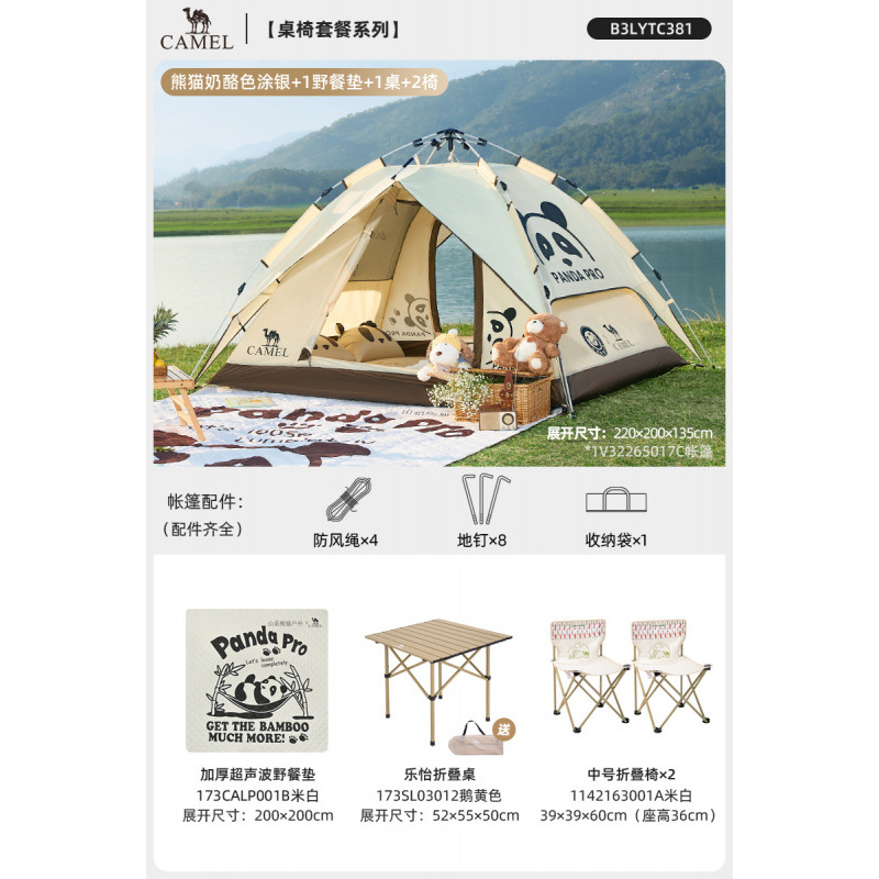 • 【유사금 | 업그레이드된 비닐] 팬더 텐트 + 피크닉 매트 + 팬더 접이식 테이블 + 의자 2개