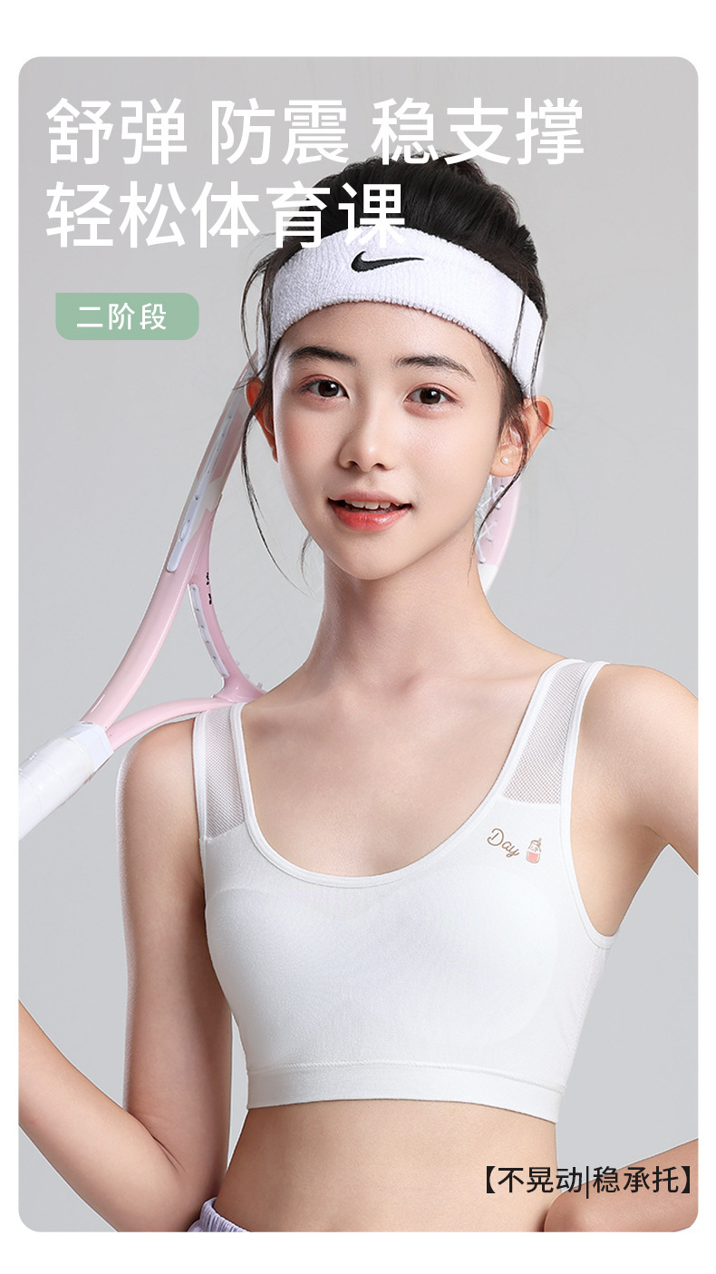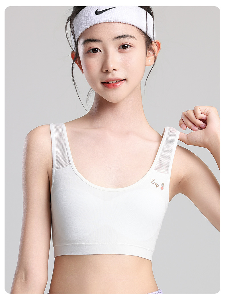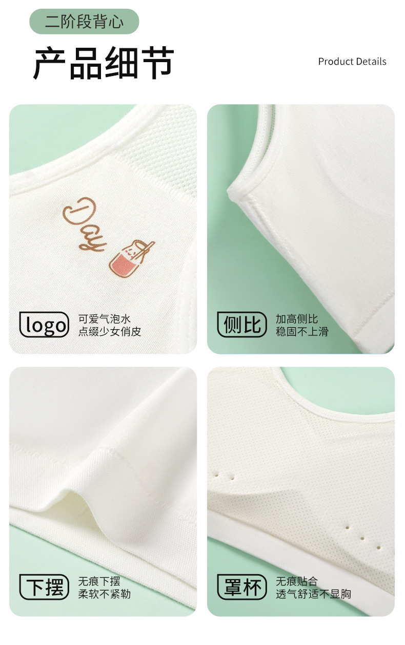 2단계 여아발달기 속옷, 중고생 고정컵 브라, 모달 누드 아미노산 랩 조끼