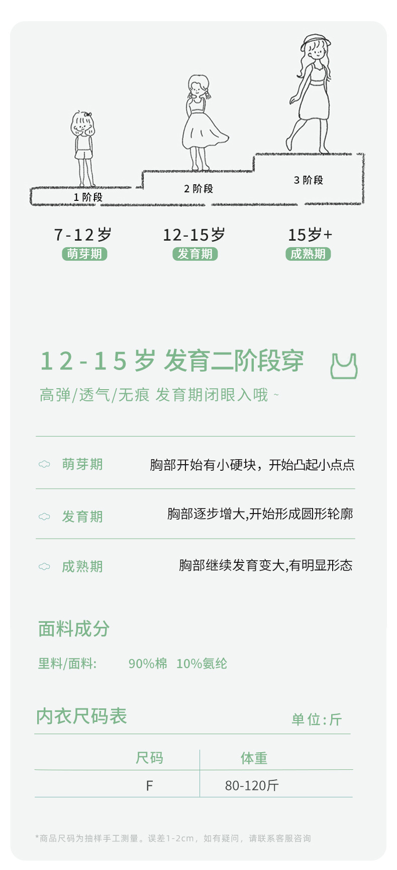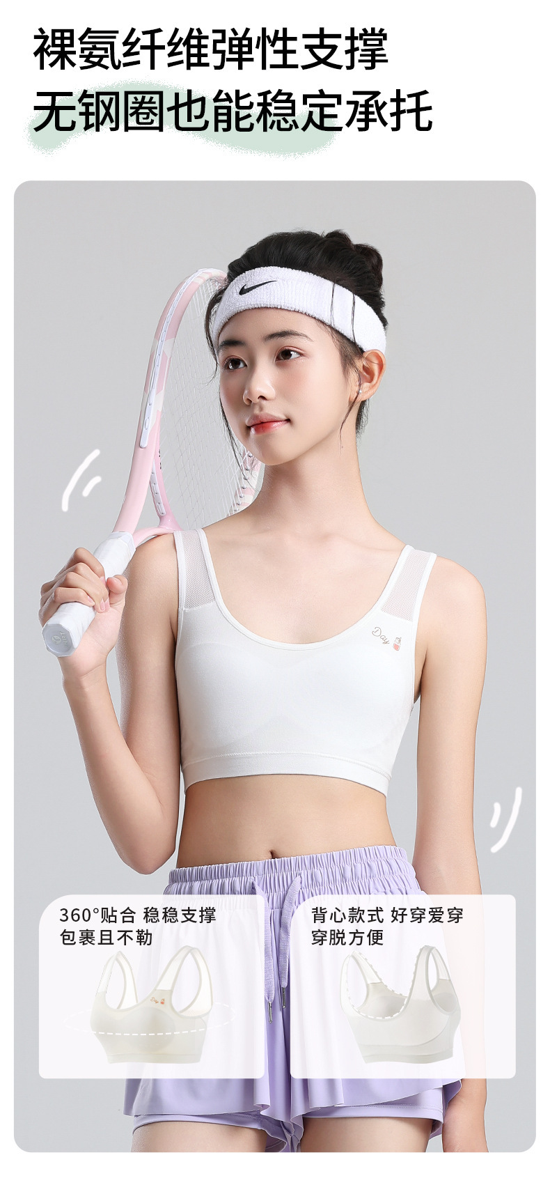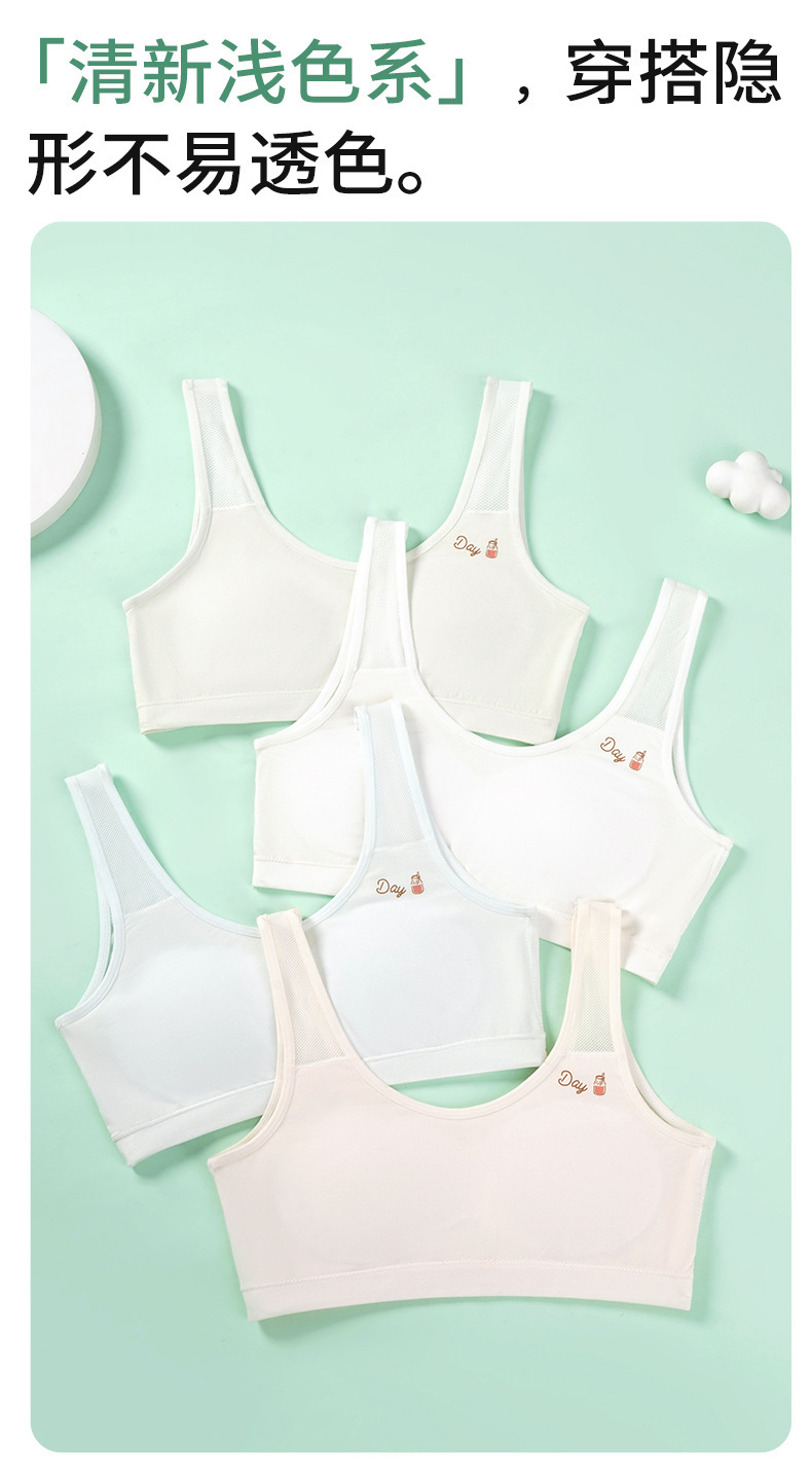 2단계 여아발달기 속옷, 중고생 고정컵 브라, 모달 누드 아미노산 랩 조끼