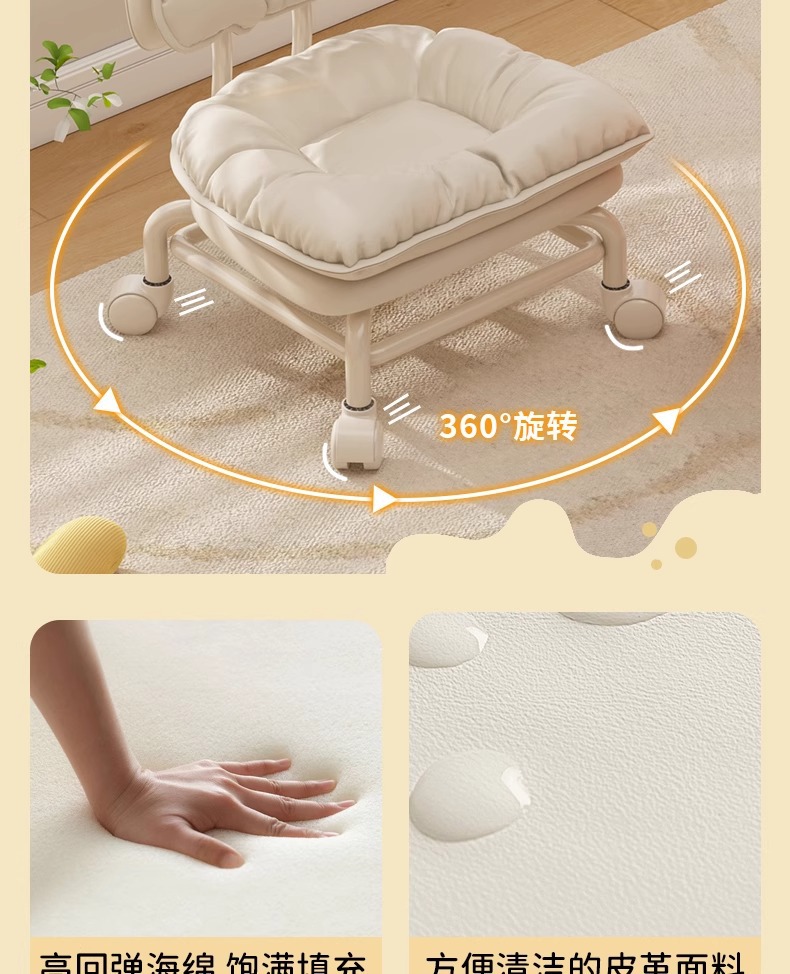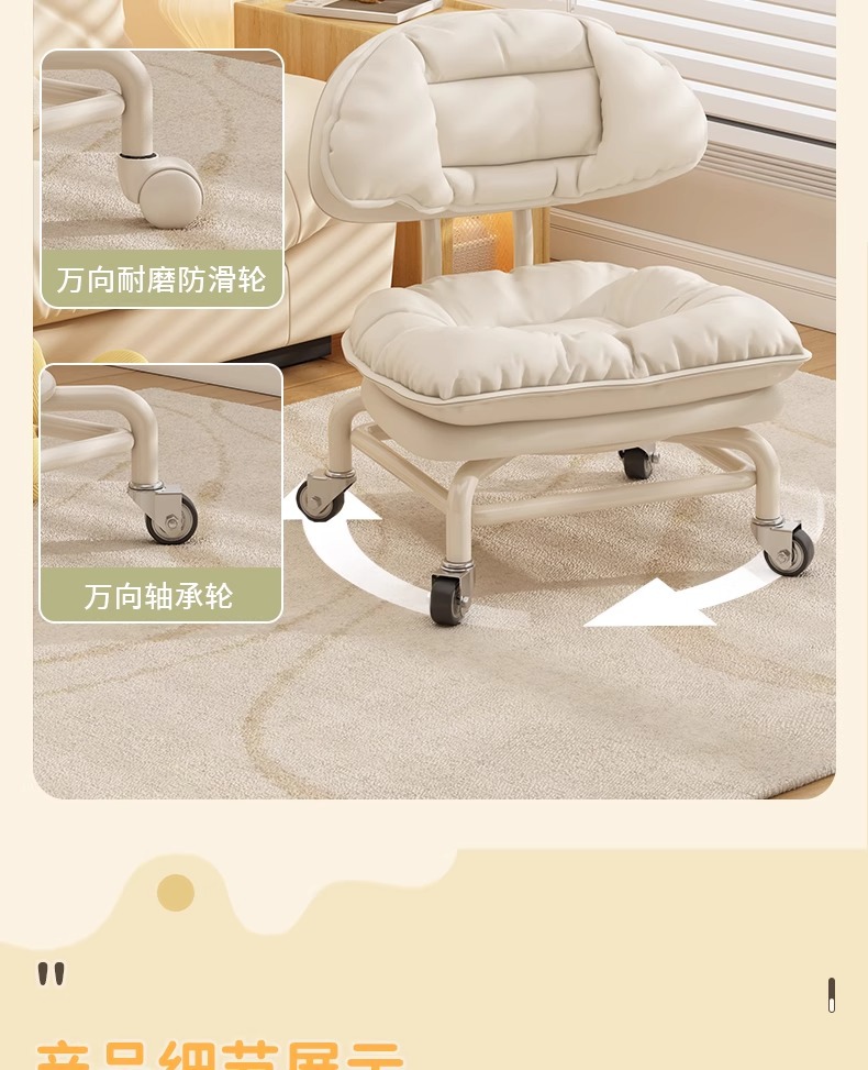 풀리 로우 스툴, 범용 휠 소형 스툴, 게으른 등받이 의자, 아기를 돌보는 가정용 무소음 바퀴 달린 원형 스툴, 유아용 의자