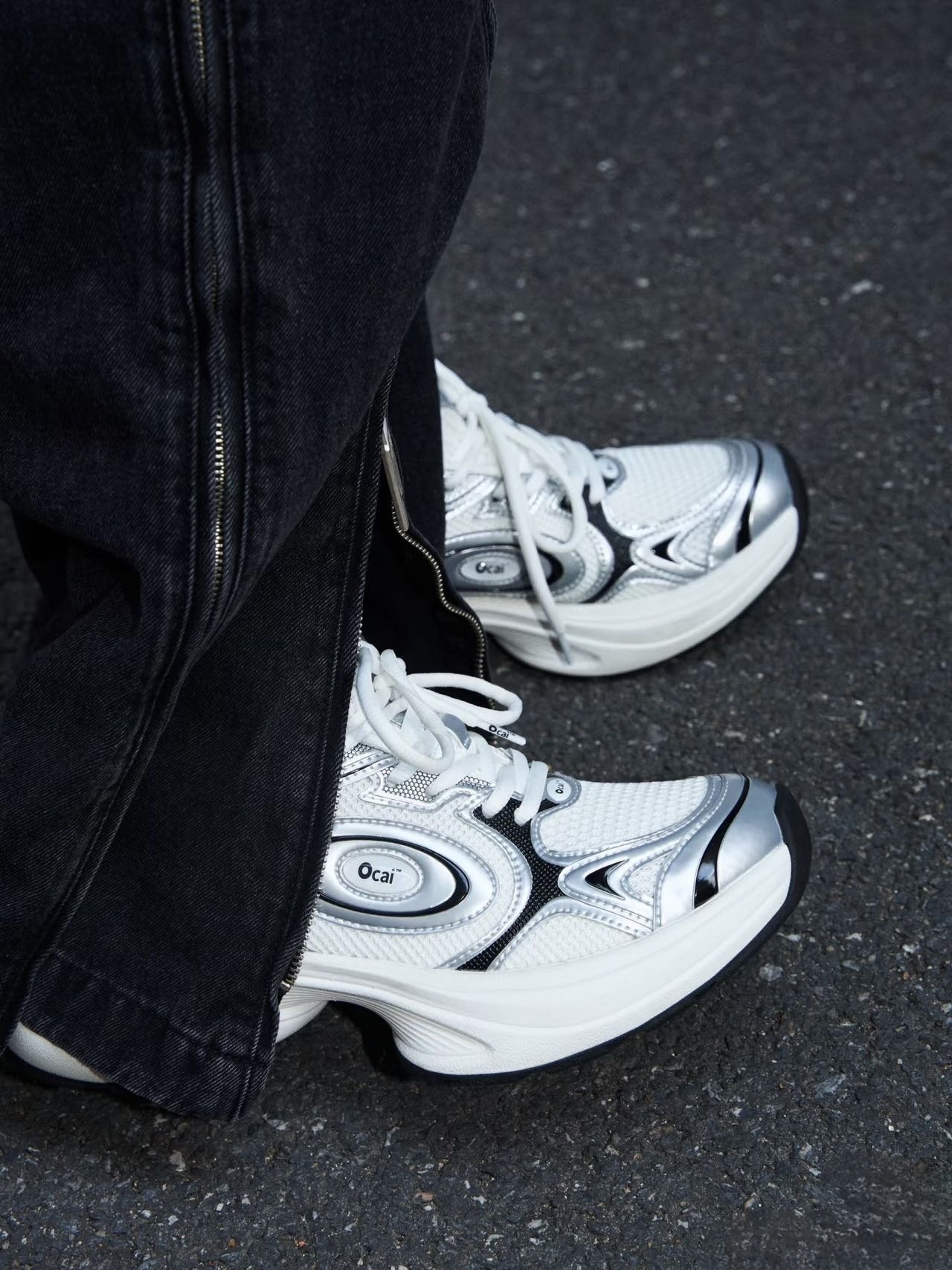 Ocai "Disk Runtech" 실버 화이트 UFO 운동화 커플 키 증가 스포츠 국가 패션 브랜드 아빠 신발스토어 가기