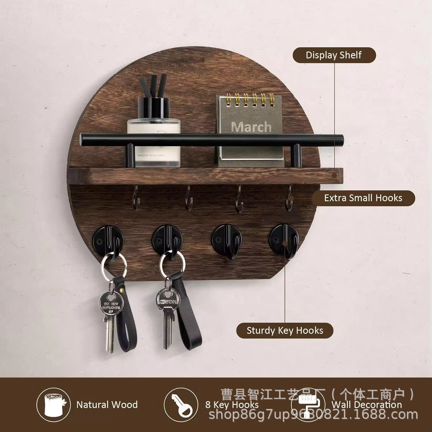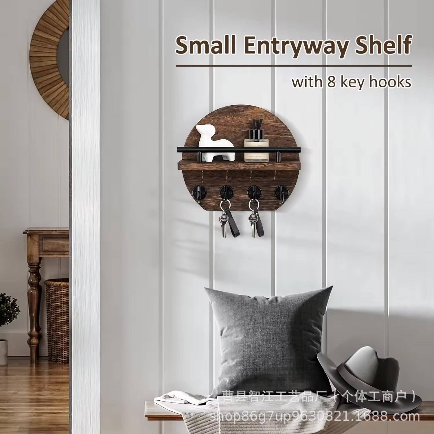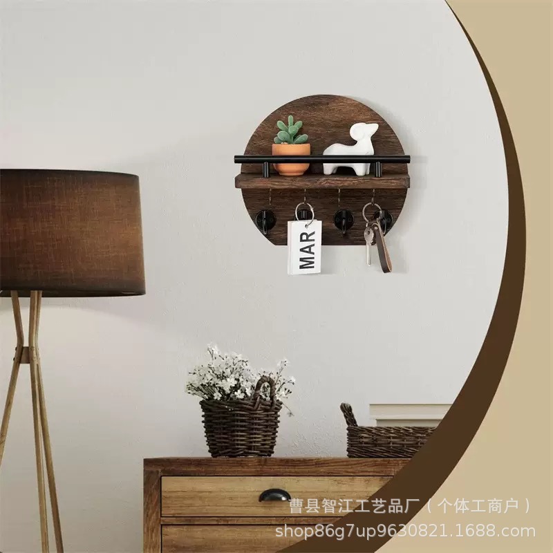 나무 벽걸이 형 잔해물 보관함 복고풍 원형 배경 장식 선반 거실 입구 열쇠 선글라스 걸이스토어 가기