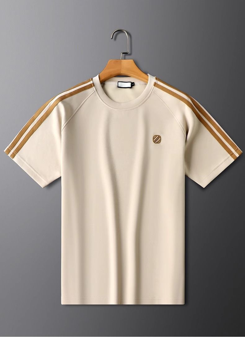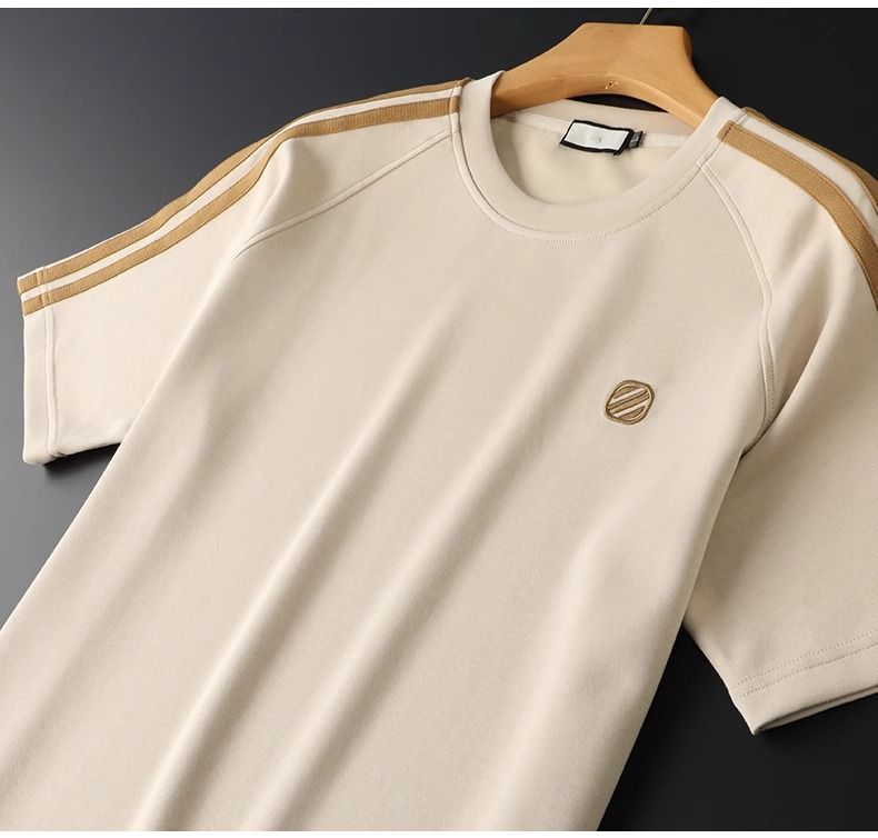 여름 사이드 스트라이프 캐주얼 스포츠 정장 남성용 반팔 티셔츠 스몰 스트레이트 스웨트 팬츠 투피스 세트 남성용 여름 정장스토어 가기
