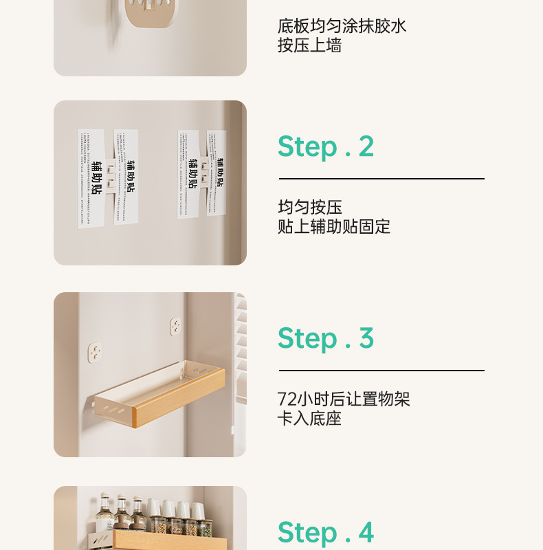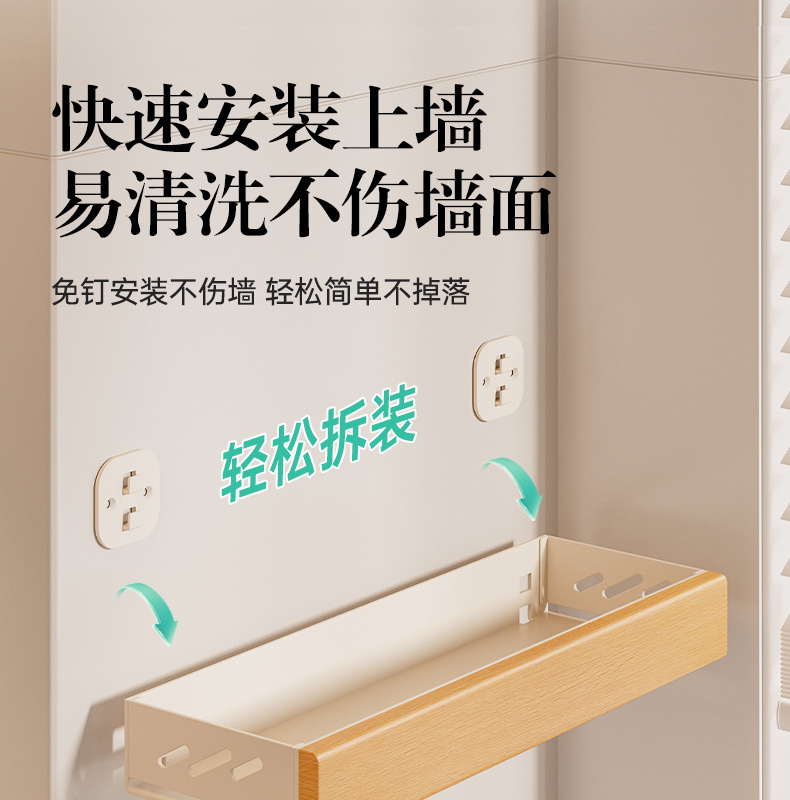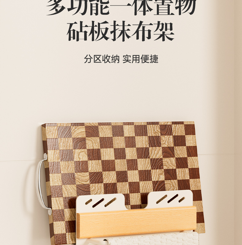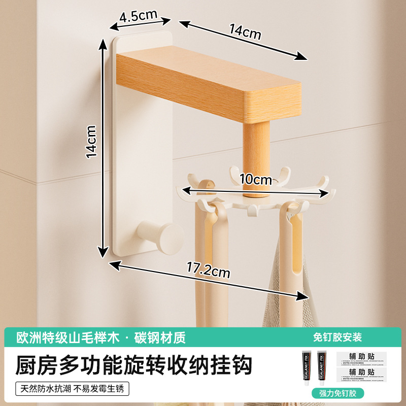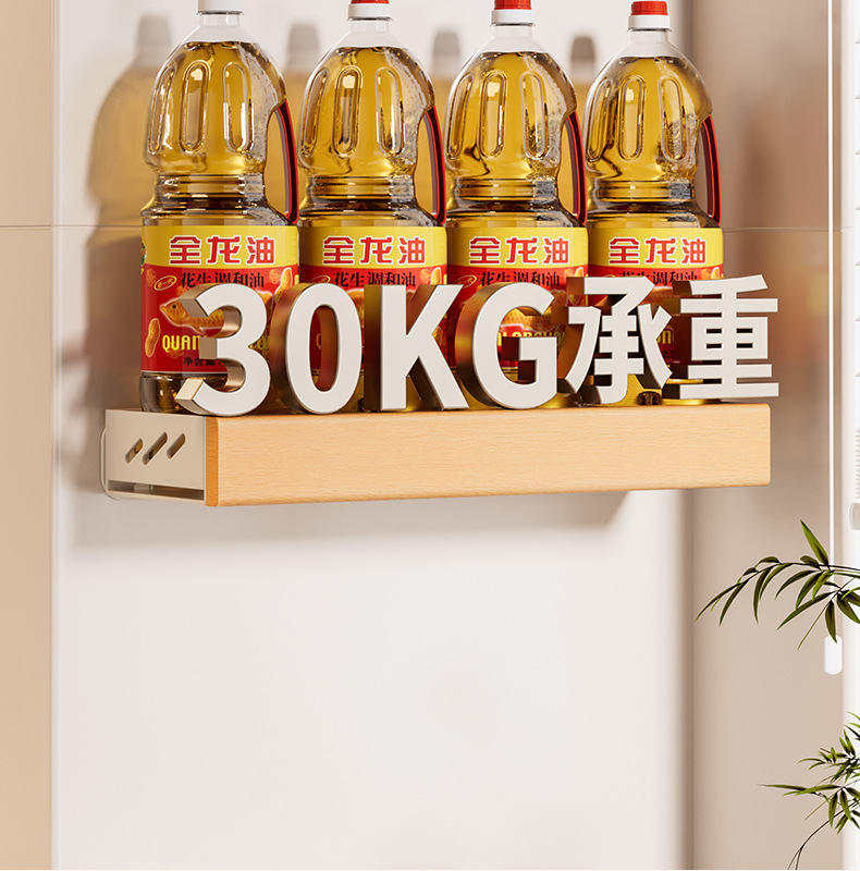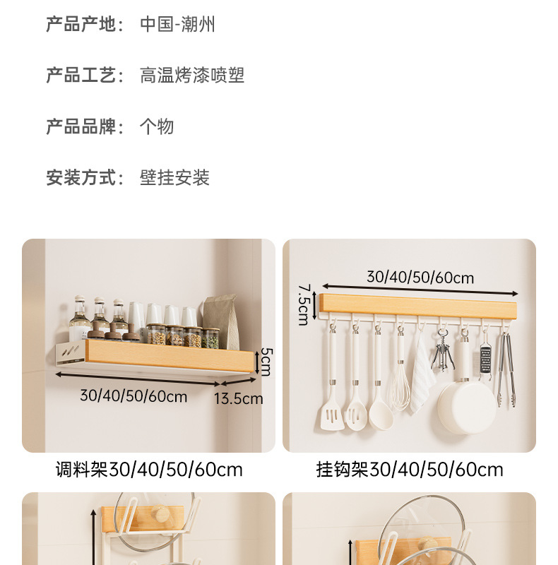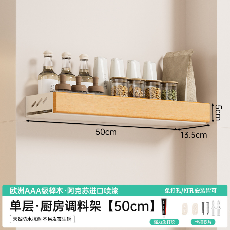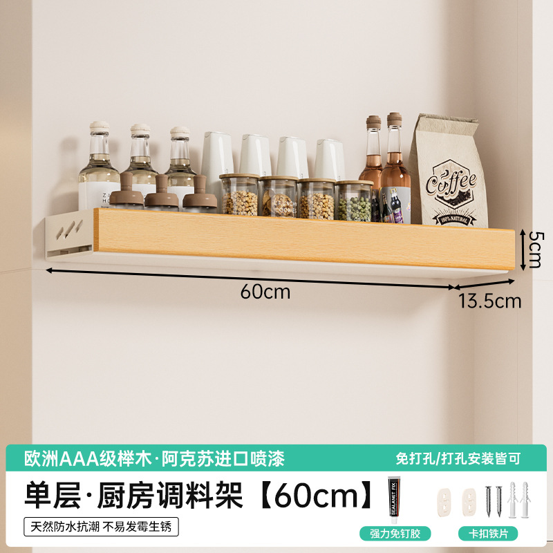 나무 주방 수납 선반, 다기능 벽걸이 냄비 뚜껑, 칼 홀더, 젓가락통, 펀치 없는 국경 간 조미료 수납 선반스토어 가기