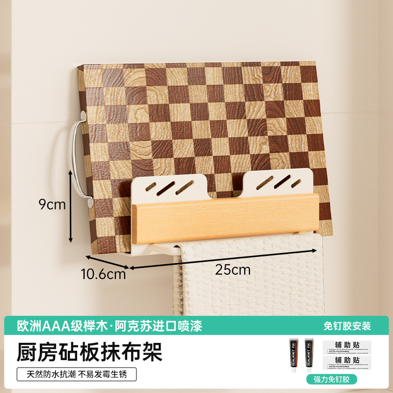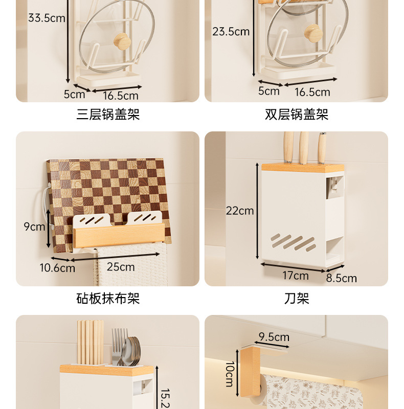 나무 주방 수납 선반, 다기능 벽걸이 냄비 뚜껑, 칼 홀더, 젓가락통, 펀치 없는 국경 간 조미료 수납 선반