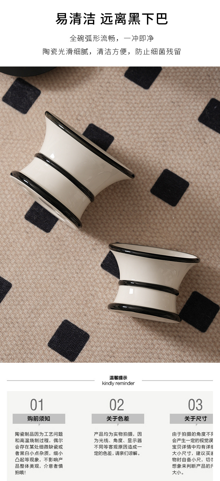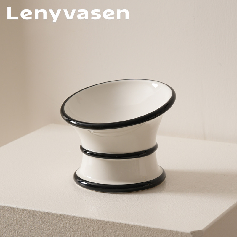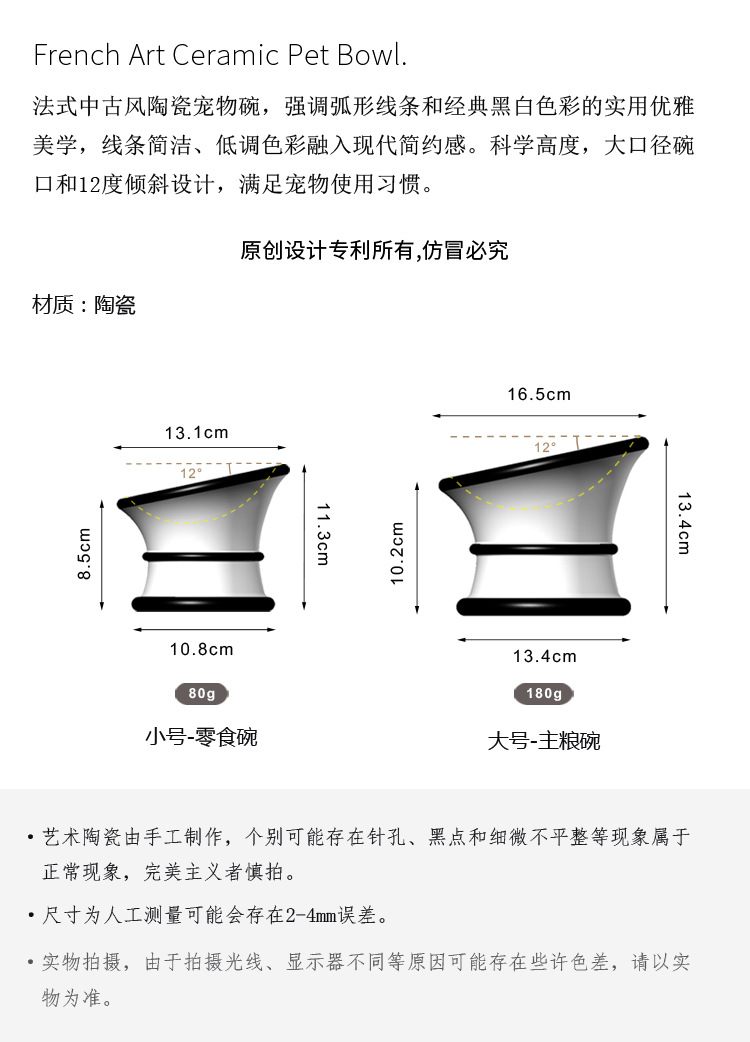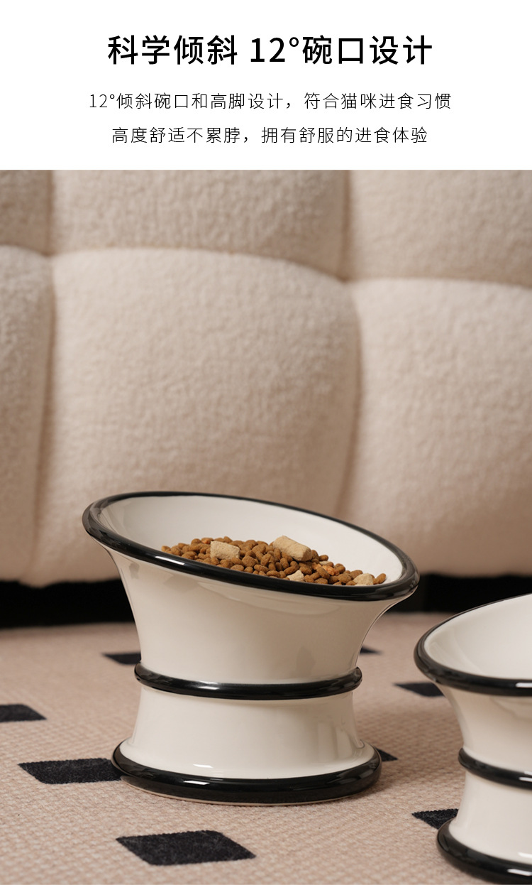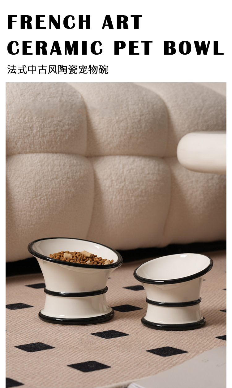 프랑스 세라믹 애완 동물 그릇, 높은 발과 경추를 보호하는 경사진 입구, 고양이 그릇, 개 그릇, 물 그릇, 고양이 먹이 그릇