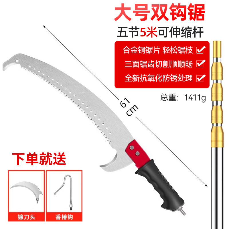 • 노란색 세트 강화 텔레스코픽 폴 6m + 더블 후크 톱(칼 + 후크 보내기)