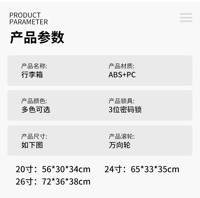 새로운 솔리드 컬러 트롤리 케이스 26inch 대용량 가방 5 륜 내 하중 암호 상자 인터넷 연예인 여성 가방 도매스토어 가기
