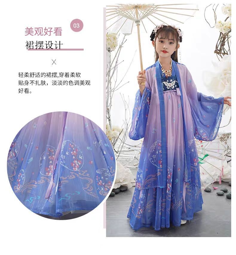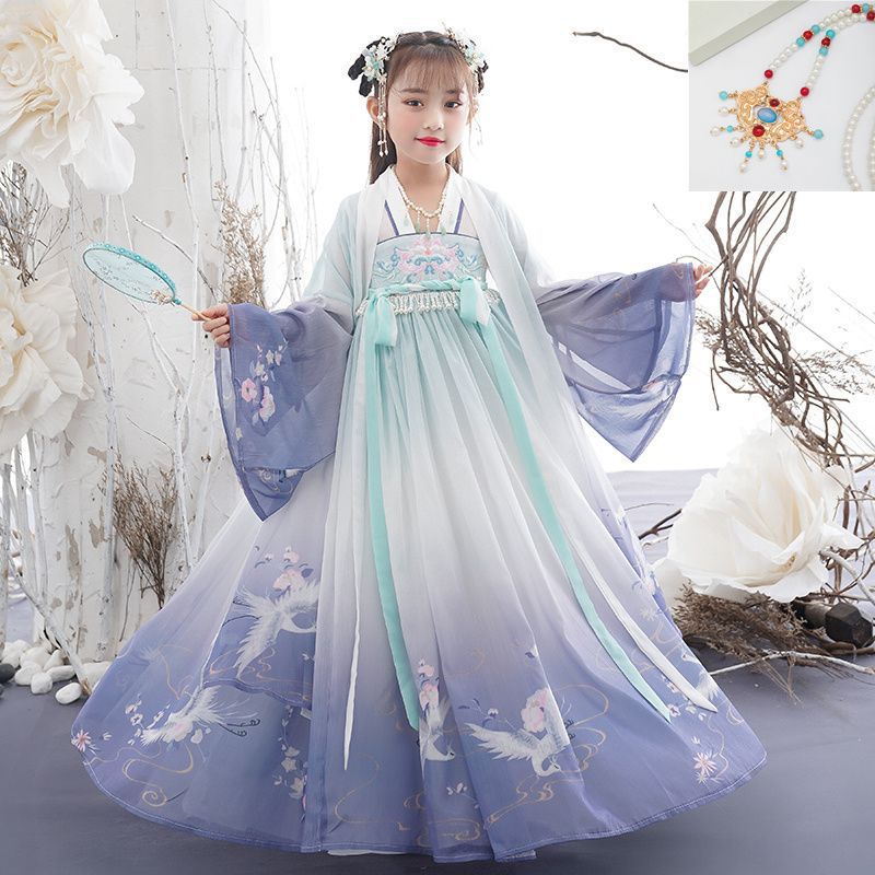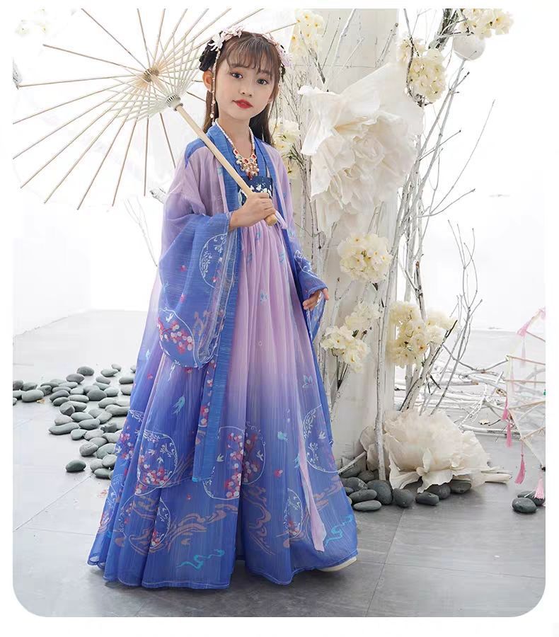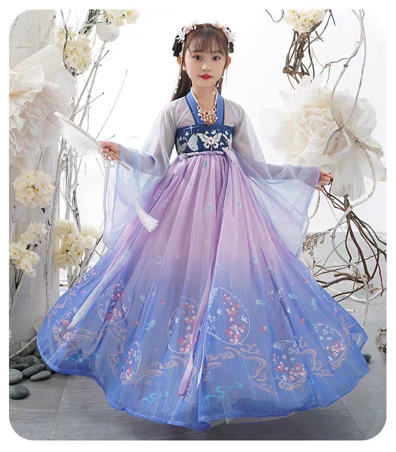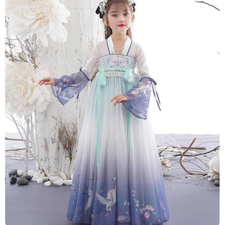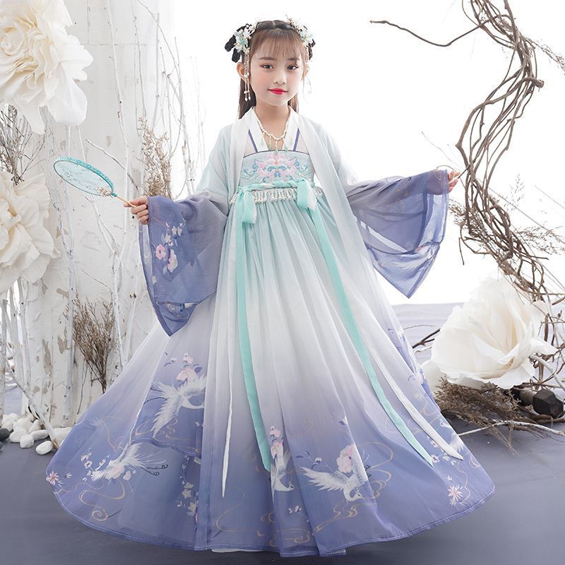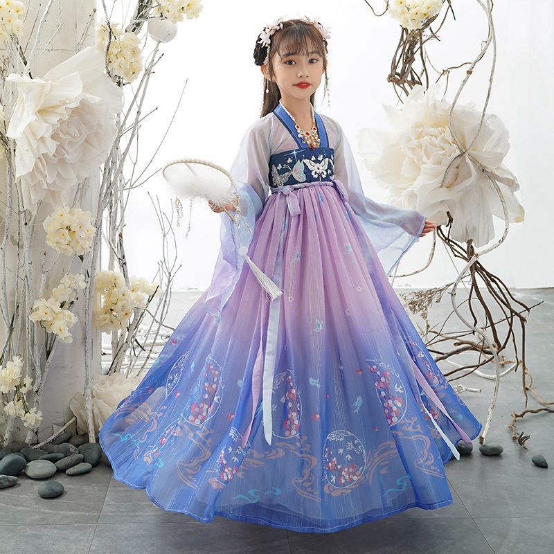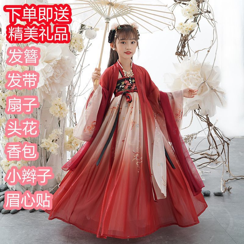 한복 소녀의 봄과 가을 스타일 우아한 슈퍼 요정 중국 스타일 가슴 길이의 스커트 고대 스타일의 큰 소매 셔츠 당나라 정장 어린 소녀 스커트