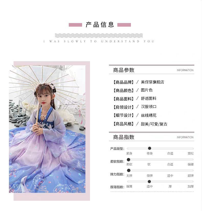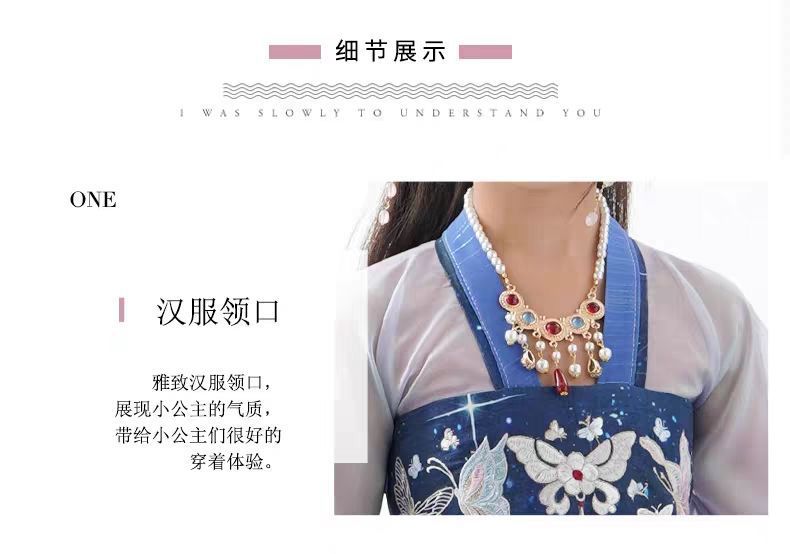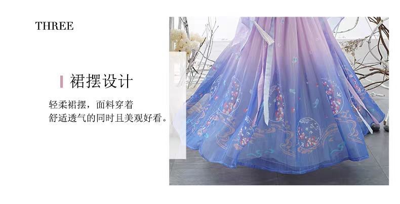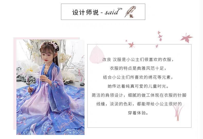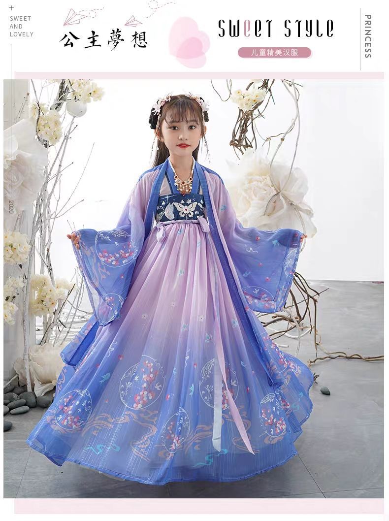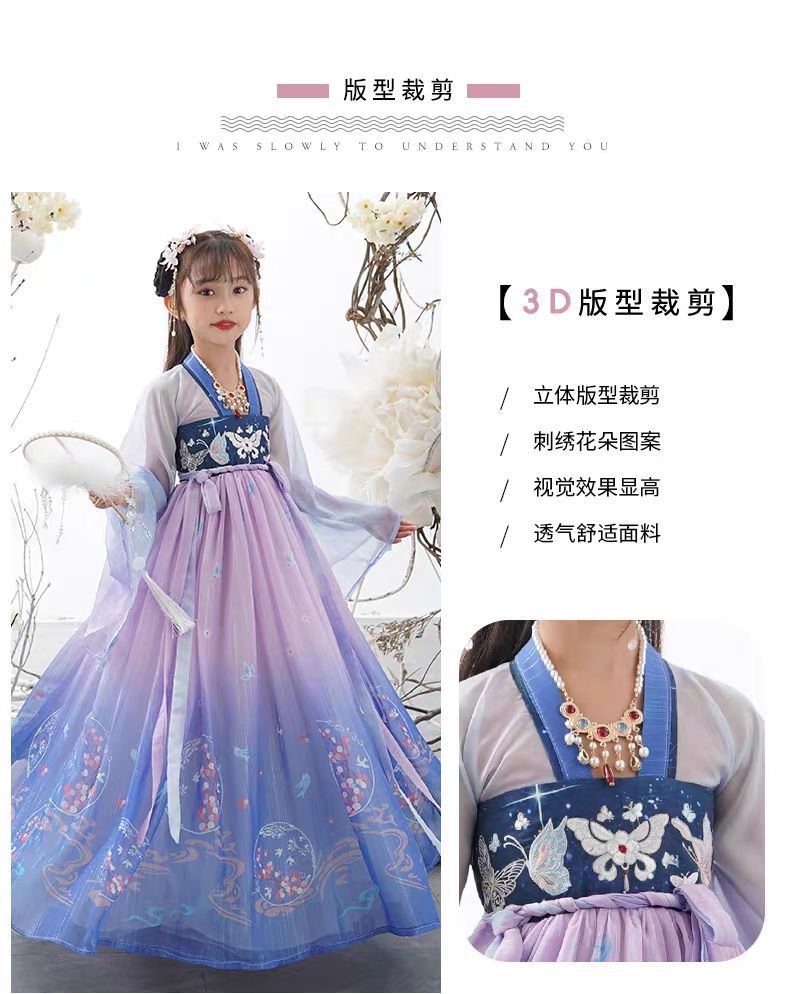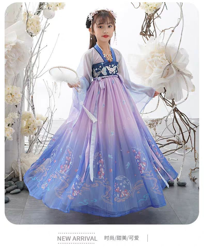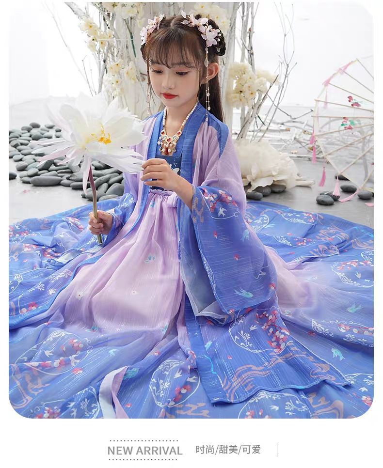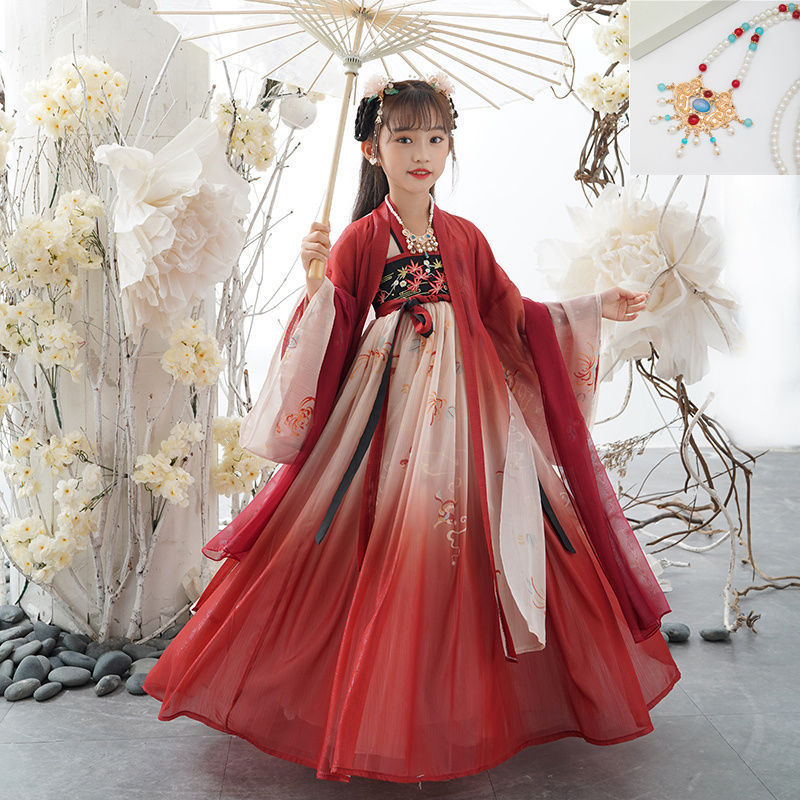 한복 소녀의 봄과 가을 스타일 우아한 슈퍼 요정 중국 스타일 가슴 길이의 스커트 고대 스타일의 큰 소매 셔츠 당나라 정장 어린 소녀 스커트