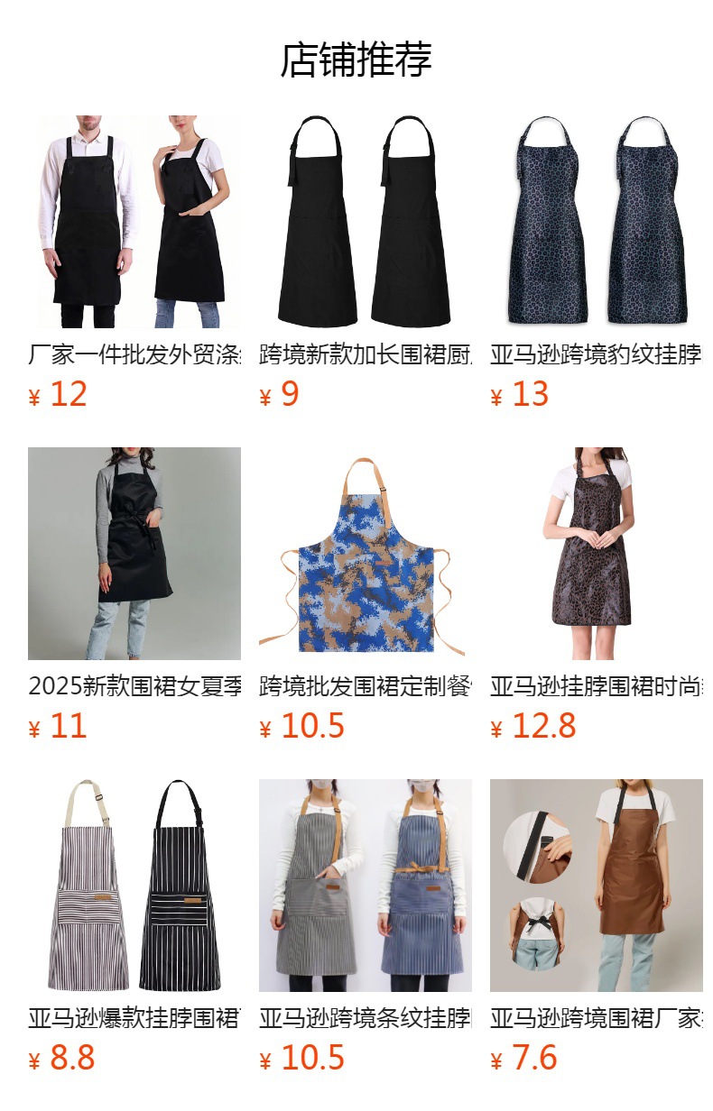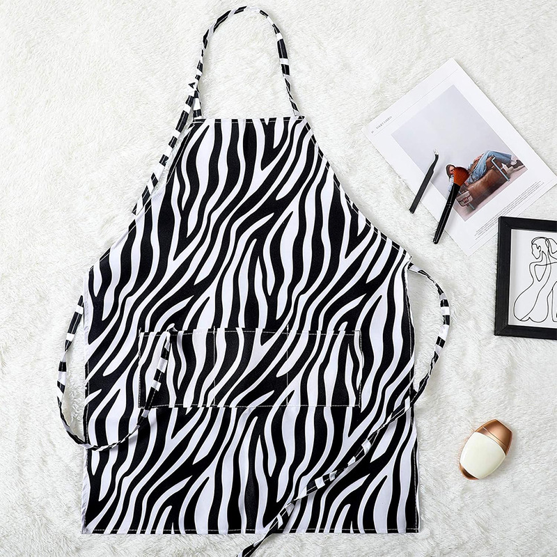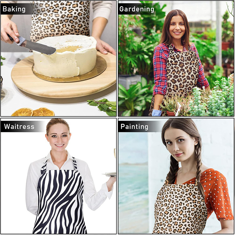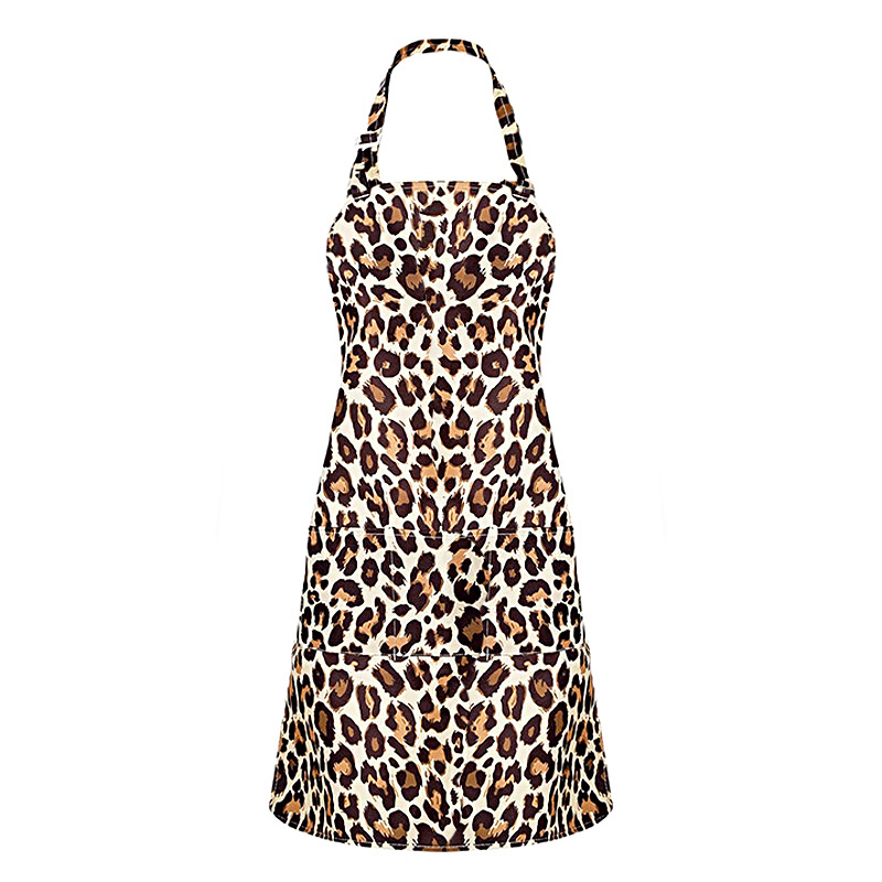 아마존 국경 간 유럽과 미국의 여성용 앞치마, 고급스러운 커피숍 작업복 앞치마, 레오파드 프린트 홀터넥 네일 아티스트 앞치마