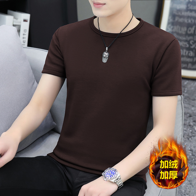 겨울 실버 폭스 벨벳 플러스 벨벳 반팔 남성 티셔츠 두꺼운 슬림 보온 속옷 중년 남성을위한 반팔 라운드 넥 바닥 셔츠스토어 가기