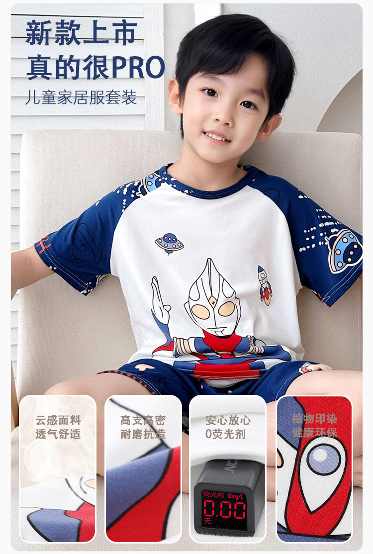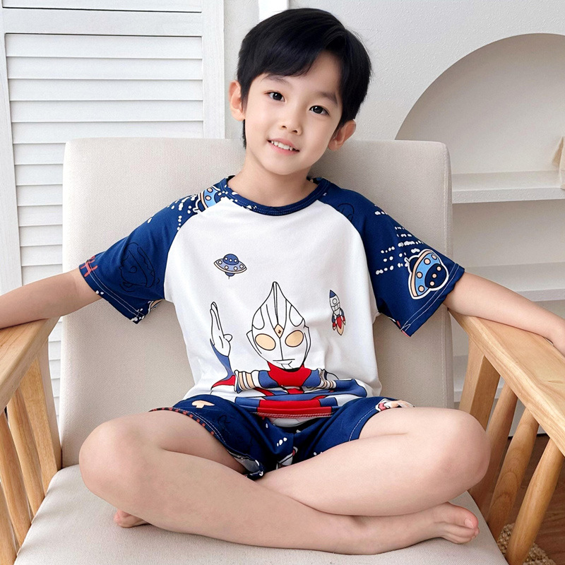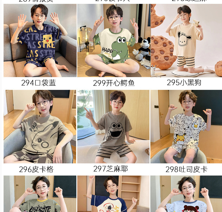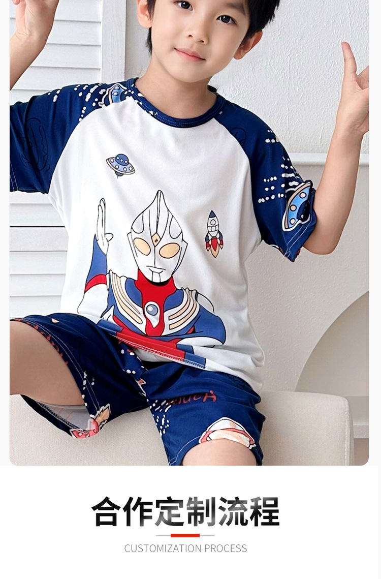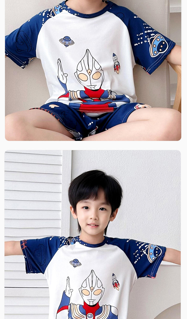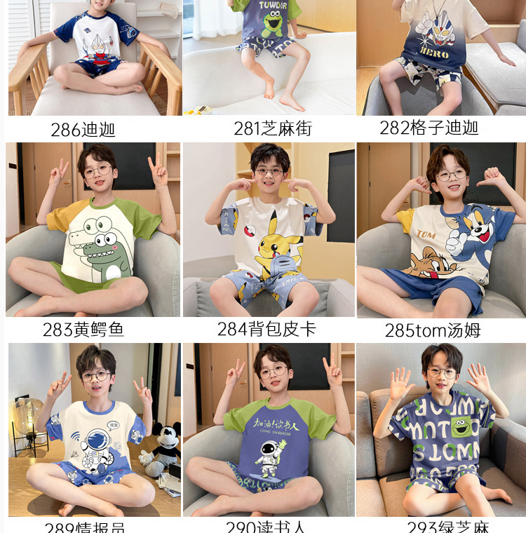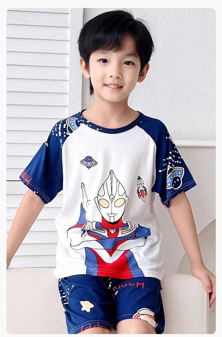2025 남아용 여름 반팔 잠옷 얇은 소재 어린이 만화 홈웨어 세트 네자스토어 가기