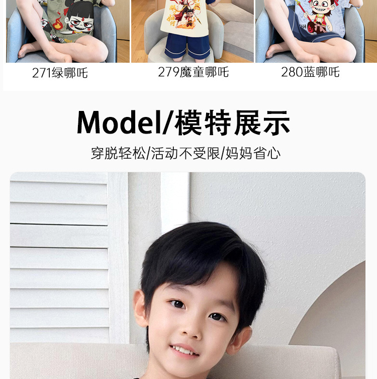 2025 남아용 여름 반팔 잠옷 얇은 소재 어린이 만화 홈웨어 세트 네자
