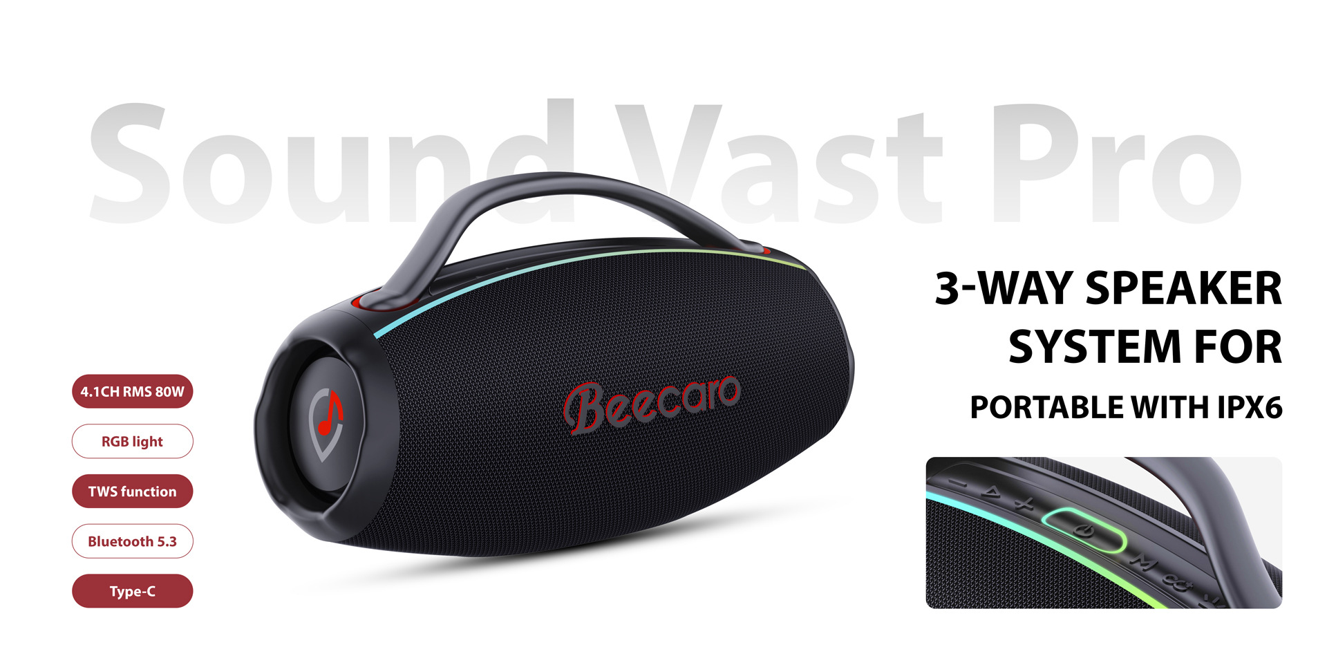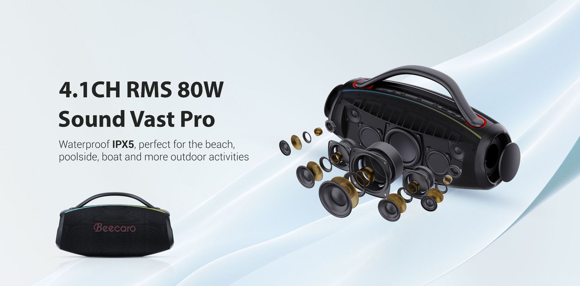 BT版本5.3,4.1CH的音响结构创造了惊人的低音和最清晰的三重音。
