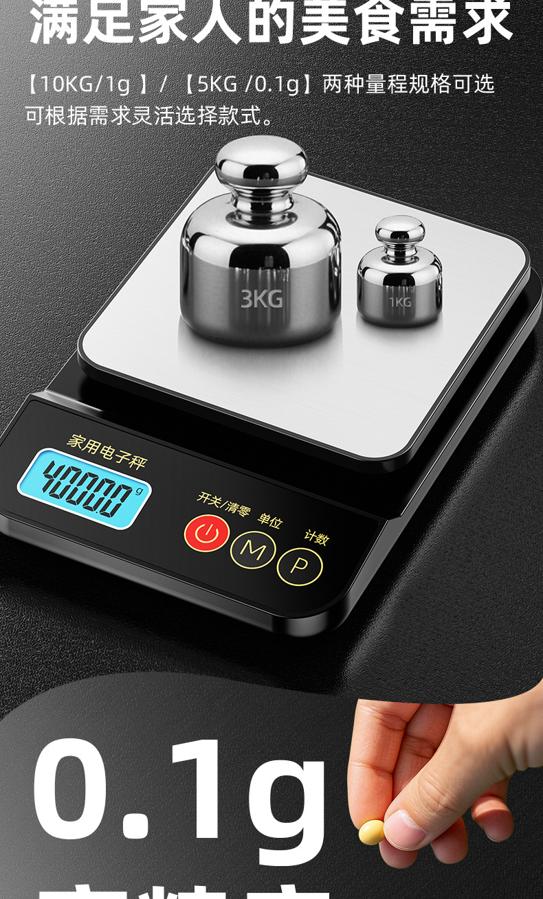 가정용 전자 계량 플랫폼 저울 5kg 식품 저울 정밀 그램 저울 휴대용 베이킹 소형 전자 저울 10kg스토어 가기