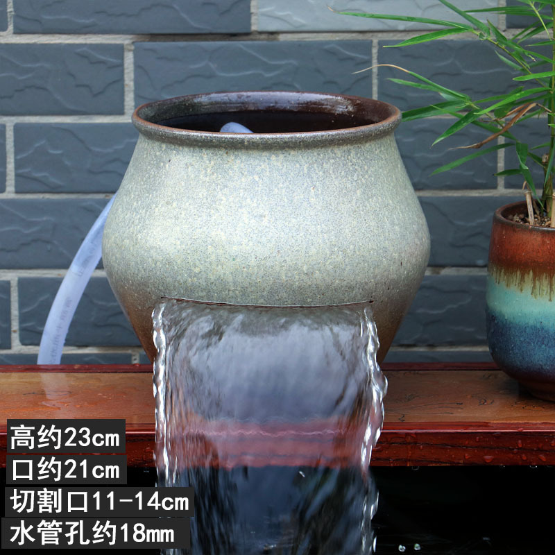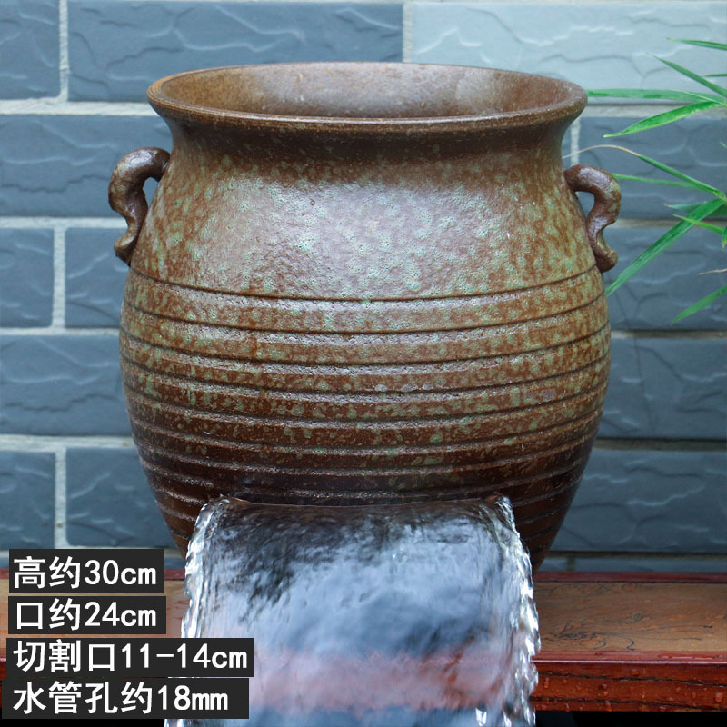 # 고대 생태 수조, 복고풍 흐르는 물 냄비, 안뜰 바닥 조경 장식품, 창의적인 구식 물통 연꽃스토어 가기