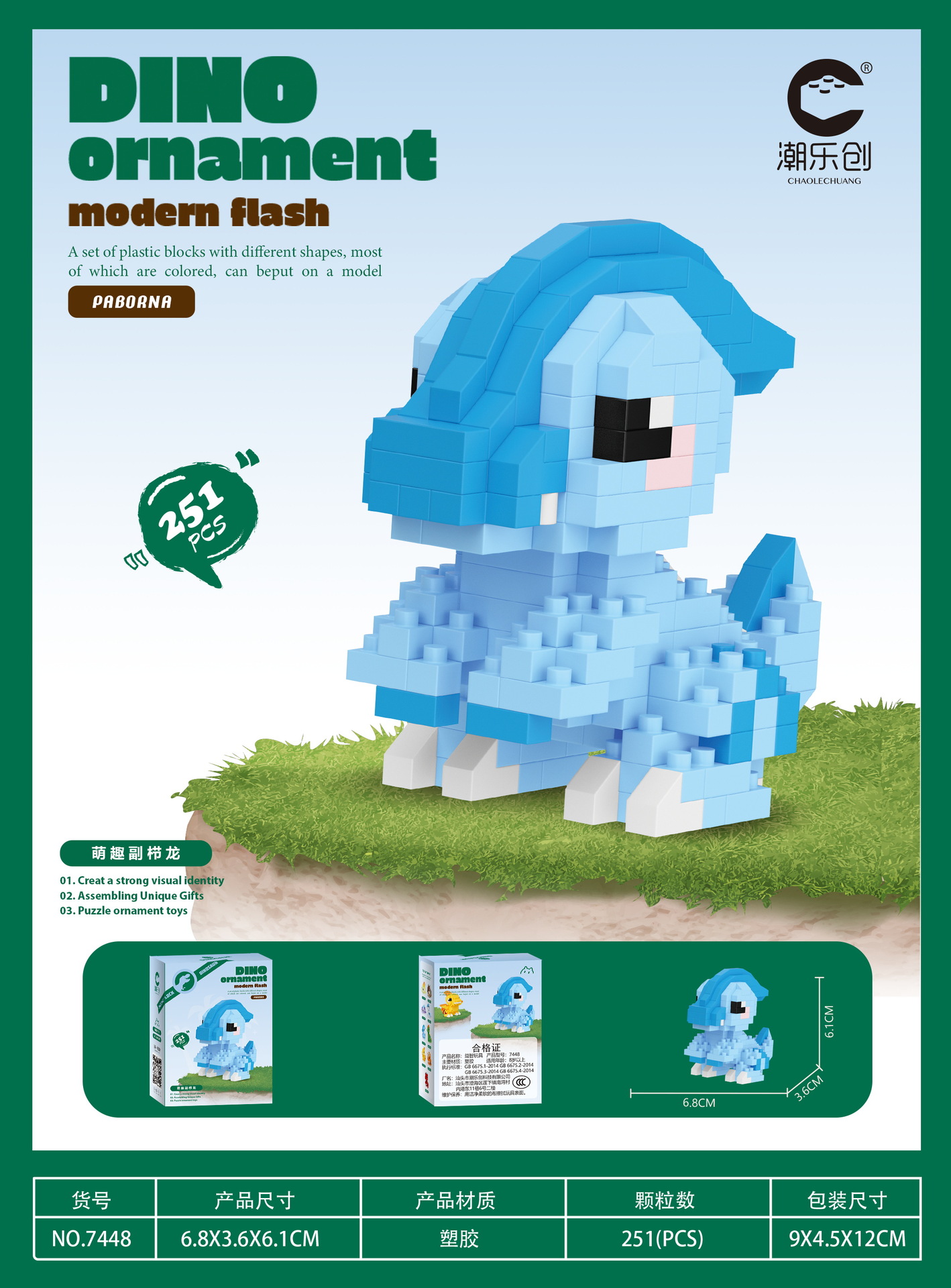 Chaolechuang 미세 입자 장난감 퍼즐 빌딩 블록 7444-7452 귀여운 공룡 시리즈 도매